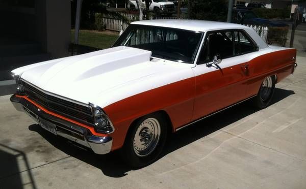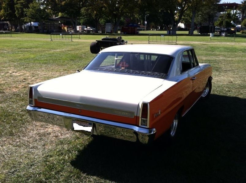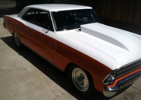 Selling my 67 Chevy Nova two door hardtop. Pro Street and freshly completed. The Chevy II's are best known for their light weight uni-body. Car runs healthy and looks beautiful. Sports a small block 350 with a competition cam 535 lift-308 duration. Car has less than 500 miles on it if that. Roller Rocker Arms. screw and guide plate. stainless steel valves. TRW Piston 10:1. 194 heads/camel backs. and dual roller timing chain. The tranny is a beefed up Turbo 350 with a manual valve body. 3500 stall speed converter. and bigger sprag. The rear suspension consists of a 9" Ford. 4. 11 mini spool. currie axles. 4 bar & coil overs. total performance package. Has a funny car style 8 point cage. 150 shot of NOS. 6" Fiberglass cowl hood. 4 point racing belts. 8 1/2 rear & 3 1/2 front centerlines. all around disc brakes. custom dash. etc. If interested or have questions feel free to email or call. My number is (510)396-4531. Have a nice day! Will consider good offers. no trades. More pics on request as well.