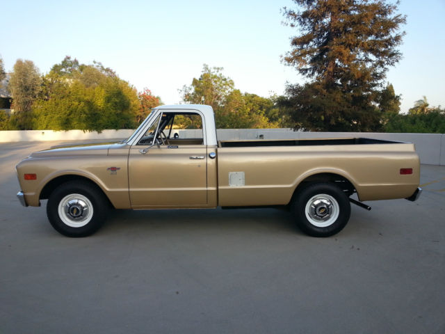 THIS IS A 1968 CHEVROLET LONGBED TRUCK YOU ARE BIDDING ON. IT COMES EQUIPPED WITH A 327 MOTOR THAT RUNS EXCELLENT! THE 4-SPEED TRANSMISSION SHIFTS SMOOTHLY, UST AS IT SHOULD. THIS ORIGINAL (RUST-FREE) CALIFORNIA CLASSIC TRUCK WAS A PERFECT CANIDATE FOR RESTORATION! ALL IT'S ORIGINAL BODY PANELS WERE STRAIGHT AND RUST-FREE. IT HAS A ONE-TIME BASE COAT CLEAR COAT PAINT THAT SHINES IT'S ORIGINAL COLOR! THE BED IS VERY STRAIGHT WITH NO DENTS AND HAS A PROTECTIVE COATING TO PRESERVE IT. THE INTERIOR HAS BEEN COMPLETELY AND NICELY REDONE IT'S ORIGINAL DÉCOR. ALL LIGHTS AND GAUGES WORK PROPERLY. THIS FINE CLASSIC HAS NEVER BEEN ABUSED OR USED AS A WORK TRUCK. I WOULD NOT HESITATE TO DRIVE THIS TRUCK ANYWHERE!! COMES WITH A CLEAN CALIFORNIA TITLE. IF THIS IS SOMETHING YOU ARE LOOKING FOR, ID WITH CONFIDENCE! THANK YOU AND GOD BLESS!