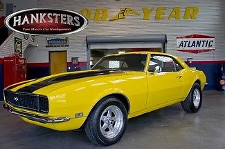 DescriptionClassic car insurance starts around $25/mo for a $25. 00 vehicle Stock # 68CAM5344Yellow 1968 Chevrolet Camaro RS SS Style ExteriorYellow exterior with Black Z-StripesSteel 2 inch cowl induction hoodRS front grille with hide-a-way headlightsFront air dam and rear spoilerSS grille emblem and SS gas cap15 inch Weld Racing aluminum wheels205/65R15s on the front and 275/60R15s on the rearInteriorBlack interiorFront bucket seatsFactory dash with 120mph speedometer and fuel gaugeAftermarket gauges oil pressure. volts and water temperature gaugesFactory steering wheel with SS horn buttonCheetah SCS automatic floor shifterDriveline383ci GM Stroker engineTurbo 350 transmission10-bolt GM POSI differentialAdditional OptionsHEI ignitionK&N air filterAluminum valve coversHolley dual feed carburetorTeam G aluminum intakeAluminum headsHooker headers with dual exhaust and tailpipesChrome alternatorElectric fanAluminum radiatorPower front disc brakesRear drum brakesChrome master cylinder and boosterPower steeringTubular upper and lower front A-armsFREE SHIPPINGHanksters offers Free Standard Shipping on every vehicle in stock to all of our customers within the U. S. Offer only applies to full retail price offers to customers within the 48 Contiguous States. Affordable Financing and Worldwide Shipping Available. For questions. please email or call. We have several classic cars in stock. please contact us directly for the most current list of inventory. Hanksters. its agents or employees shall not be held liable to anyone for any errors. omissions or inaccuracies under any circumstances. The entire risk for utilizing the information contained on this site or linked to this site rests solely with the users of this site.