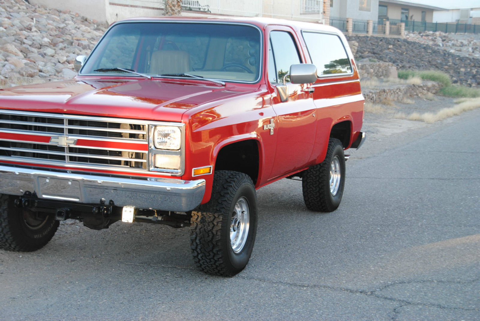 UP FOR SALE IS MY 1984 K5 BLAZER. I BUILT THIS TRUCK TO TOW BEHIND MY MOTOR HOME AND FOR SPOTTING TRAILERS (FRONT HITCH/TOWBAR MOUNT). I started out with a clean 1 owner low mileage. rust free California truck and rebuilt or replaced everything that I could . I am sure I will miss some things so if you have questions I will be glad to answer. Start with outward appearance: Painted 2 stage Viper Red with the top smoothed and painted body color. All rubber trim was replaced. 1987 grill and all new chrome bumpers etc. The truck was taken apart to paint top removed and new glass rubber and top seal rubber. Also sprayed black bed liner material on rear compartment side walls. floor and tailgate section. Finish was cut and rubbed! New wheels and tires 31" TA's new front carpet. seats were rebuilt. New dash and aftermarket gauges. The radio is a factory am/fm cassette that was completely rebuilt with a port installed in the face to allow you to plug in your I pod or? The A/C system was completely rebuilt using all new parts ie: heater core. evaporator. condenser. custom hoses. compressor. fan motor. plus a reseal of the unit. Now for the drive train: Both front and rear differentials received all new bearings. and seals front axles had u joints replaced. Both front and rear drive shafts replaced all u joints. New radiator. GM clutch fan. water pump all new hoses. The engine is a 290 HP GM crate motor. when I installed the GM serp. belt set up with new A/C comp. . power steering pump. 120 Amp alternator. I found the cyl. heads did not have the necessary bolt holes to secure the brackets so I installed a set of Dart iron heads. The Q jet carb with electric choke was rebuilt by "The Carb Shop" New electronic GM distributor. Hooker headers Jet coated inside and out with full exhaust and dual Big block Flow master mufflers. The new GM clutch was installed with the new motor and a factory rebuilt NV4500 5 speed trans along with a brand new (NOS) transfer case. New Warn locking hubs. In summary I do not think you will find a cleaner more thoroughly completed truck around! I towes wonderfully and parking trailers or launching boats is a breeze with either the front or rear hitch _THE ALUMINUM Trailer hitches are NOT included in this sale. And I know you could not build it for what I am willing to take!!!All of the above work has been accomplished since 06/2007 with 70. 07 miles till now 09/2014 with 79. 79 mile which is combined about 70% towed and 30% drivenOn Sep-29-14 at 11:02:56 PDT. seller added the following information:And it has a pro comp 2" lift that includes all new springs and shocks!