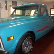This stunning 1968 Chevrolet C10 step side pick up has just finished a complete frame off restoration into one unbelievable resto-mod. Starting with a completely rust free truck the body was removed from the frame where the chassis underwent several modifications. Four wheel Wilwood disc brakes were added and the steering was updated with a power rack and pinion set up. A stainless steel fuel tank was dropped in between the frame rails behind the rear axle. This replaces the original fuel tank that was behind the seat from the factory. New lowering springs were placed in the rear with drop spindles up front. All suspension bushing were replaced as well. The body of the truck is arrow straight with a perfect fit and finish. The deep black paint looks incredible with a high gloss finish showing off the excellent body, how quality with a superb fit and finish. All the chrome and stainless are new along with all the glass and weather stripping. Wood floor in bed and custom frenched tail lights in the fenders. The custom black leather interior is what really raises the bar on this truck. All molded black leather from the seats, oor panels, ick panels, eadliner, ehind the seat and even atop the dash. Complete inside of cab covered in black leather. A new ididit chrome tilt column was installed with a custom leather wrapped steering wheel. New AutoMeter gauges have been added along with Vintage Air Conditioning and a Kenwood sound system. This awesome truck is powered by a fuel injected Vortec 6.0L V8 producing 300hp and 360lb-ft of torque. The transmission is a 4L80E automatic overdrive and the truck retains it's original 12 bolt rear axle with 3.42 gears. All is kept cool with an oversized aluminum radiator and external transmission cooler. The drive train performs flawlessly and is super smooth, uns at highway speeds with ease. The truck also sits on a new set of 20" chrome Boss wheels and tires. This truck has been built with an open check book to be a show winner when parked and drive like a sports car on the road. This black beauty is ready to go.........