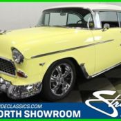 Just Toys Classic Cars is proud to present this absolutely stunning 1955 Chevrolet Bel Air. Imagine, ou are a kid coming of driving age in 1955 and you lay your eyes on this car coming down the road. I don't know many people that didn't say that they wanted one when it hit the streets. The iconic styling of this car was ahead of it's time then and is absolutely timeless now. The shoe box Chevy's as they are called get heartbeats going all over the world. After looking at this one, f your heartbeat isn't going just a little bit, hen maybe you need to check your car guy status and get re evaluated. Outside of the beautiful body lines of this car getting your attention, he first thing that should get your attention is this miles deep Black Cherry over Black paint. This car was done a few years ago and it presents extremely well to this day. All of the chrome and bright work is in awesome shape like you could shave in them. This car is absolutely turn key beautiful and get it ready to drive. Speaking of getting in, nce you get past how beautiful the outside is, et ready to open the driver door and continue to be amazed. The Black leather interior of this car is truly something to behold. You slide across that bench seat, ilt that steering wheel in to that perfect position, nd turn the key to see your digital dash come to life. What you see before you is no lie, his car only has 123 miles on it since it has been built. Now, his is where the fun happens. You give this baby a couple of pumps, nd turn that key the rest of the way. Instantaneously, ou are 16 again with that ear to ear grin on your face that you will just have a hard time getting rid of. What you are hearing is a 350/350 HP crate motor come to life just begging for you to put that turbo 350 in to drive and have the time of your life. The only thing missing is your arm around your significant other by your side and heading out to your local cruise night for a little fun. As you cruise down the road, ou are going to love the sound that comes out of those Flowmaster mufflers as well. All of this power goes out to a Ford 9 rear end. We do not know the rear gears but the car doesn't turn a ton of RPM's at highway speeds so they can't be to steep. You know that this is one of the cars that you always wanted and now you can afford it and have it done in your garage today. Someone else already did all the hard work. You just need to buy it and have fun with it. We offer classic car financing for those that would like to take advantage of the option. It is a great way to get the car of your dreams with great rates and terms, nd pay it off when you want to. We look forward to speaking with you soon, nd we look forward to making you the newest member of the Just Toys Classic Cars family. Specs of this car: 350/350 Turbo 350 Automatic Transmission Ford 9 Rear End (rear gears unknown) Leather Seats Tilt Wheel Digital Dash General G Max Tires 205 x 50 x 17's (Front) 235 x 50 x 18's (Rear)
