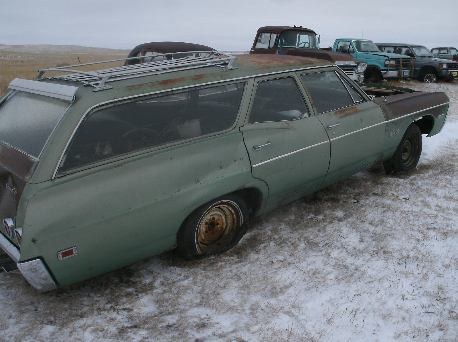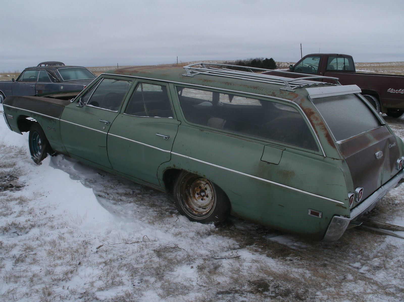 1968 Chevy Bel Air 4 door Wagon. Has 3 speed manual overdrive transmission. Was a 307 car but has no motor. Has 3rd seat. This is a rare. cool wagon. All it needs is your motor. Very minimal rust and has a clear title Car has very solid floors. I will post more pics. this weekend. Any questions. call (605)-852-2656. Thanks. Dan.