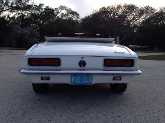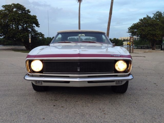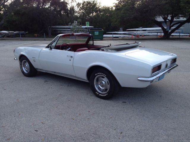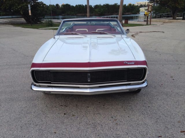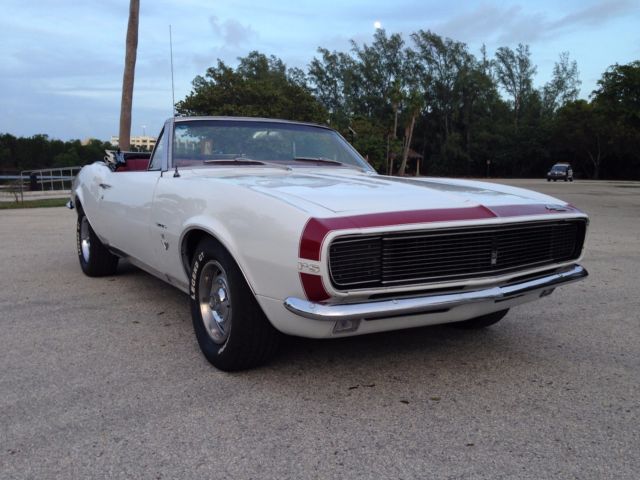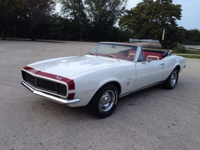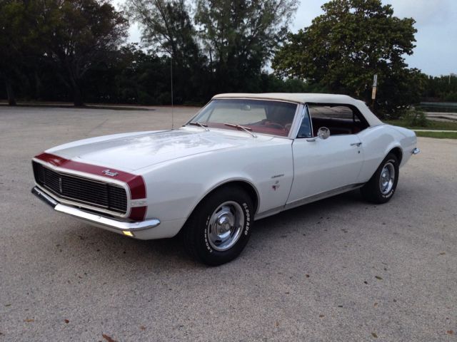 From my personal collection I am offering this very rare and sought after Factory 4 speed 1967 Camaro Rally Sport Convertible. Finished in it's original color combination of Ermine White with a Red Custom interior. The car is a very highly optioned car with some of the most desirable options. The car has it's original born with (matching) 327 4 bbl V8 engine and is a factory 4 speed manual car as decoded by the trim tag and vin number. The list of options are Rally Sport Package, ual exhaus, ower steerin, ower front disc rear drum brakes, nbsp;14"rally wheels, actory tachometer, onsole with gauge package, ower convertible top, M radio (needs a speaker) and tinted glass. Also this car has the original jack and a full size spare tire. This car was the recipient of a frame off restoration long before I bought it 3 years ago but still looks beautiful. The previous owner owned the car from 1969 and stated the car as an original mile car now with about 48000 miles on it . The body panels line up nicely and the doors open and close properly. The floors and frame rails are all in excellent condition . The car has had all new weather strips and a new convertible top recently. The interior has been replaced also and looks like new. The car runs and drives very nicely . All the gauges work as does the power top. The tires are older and have nice thread. I have done my best to describe this car but if you have any questions feel free to call me anytime during the auction. The NADA Old Car Price Guide lists this car at $40230 for an average and $71825 for a high. This car will sell for a lot less than their listings . When it comes to collector cars there is nothing better than a 4 speed convertible and this car is bound to appreciate in value. The car is located in Hollywood Florida about 10 minutes from the Hollywood/ Fort Lauderdale International Airport. The car is available for inspection anytime before the auctions end. Please have all funds available before you bid. A 10% deposit is required within 24 hours of the auctions end and full payment is due within 3 days of the auctions end. The car is being sold as is and as shown with no warranties expressed or implied. I reserve the right to end the auction early as the car is available for sale locally. Thank You for viewing my car and good luck to all. For any questions call Ian @ 773 551 5075.