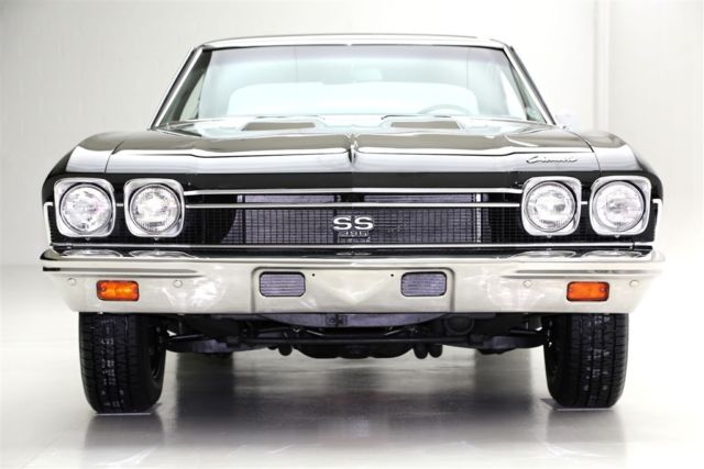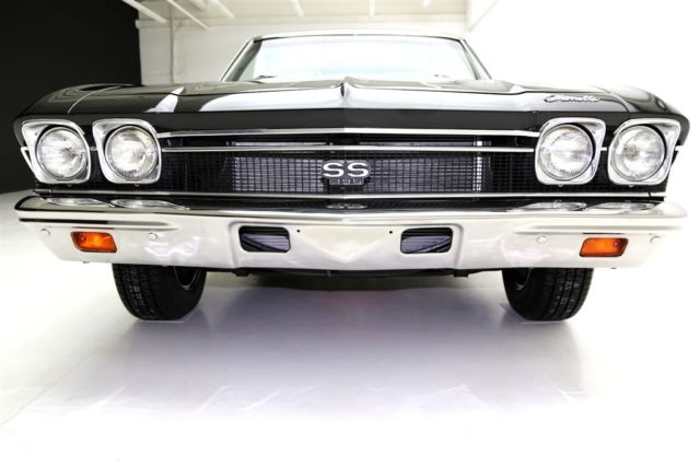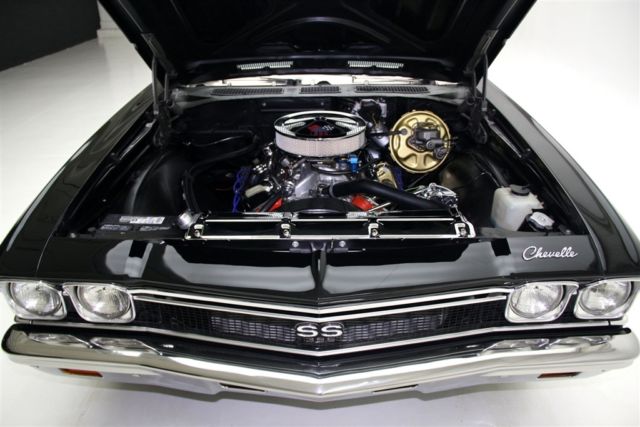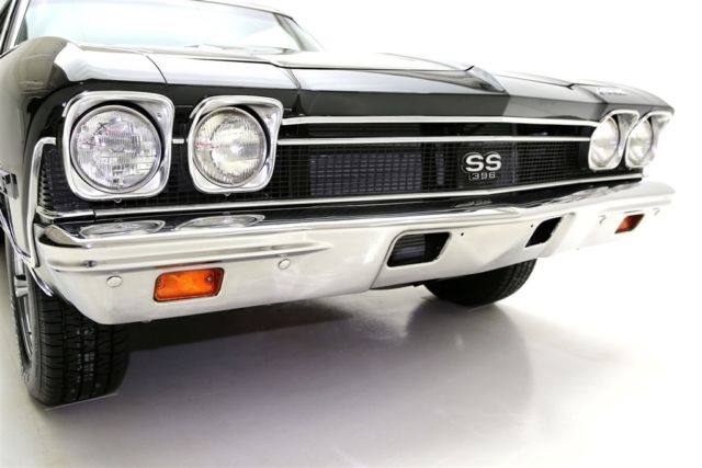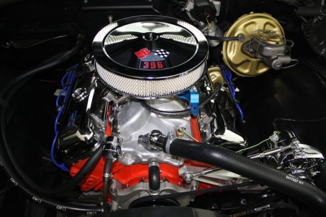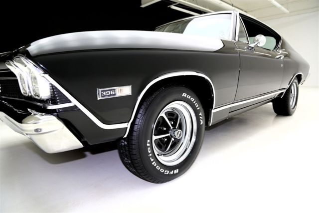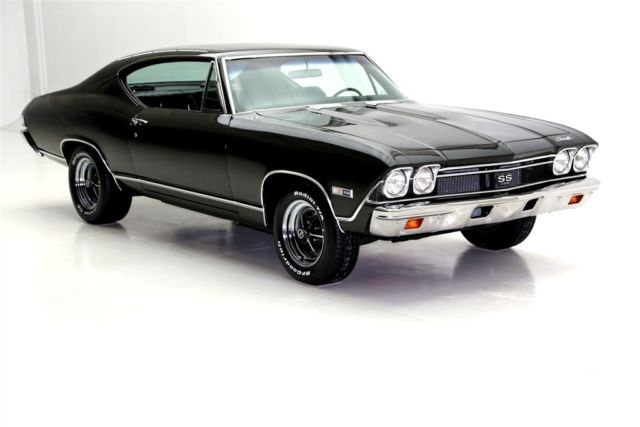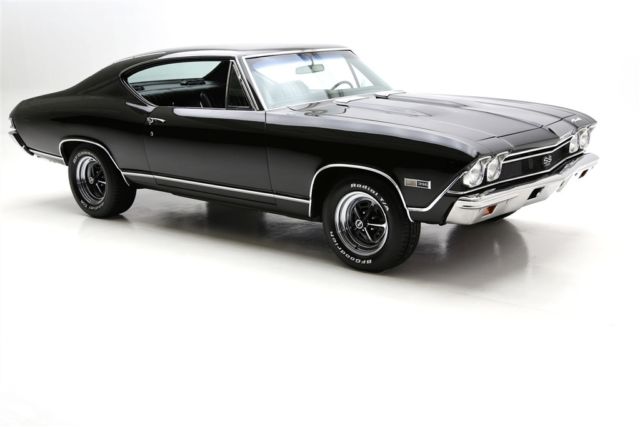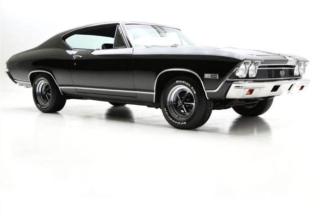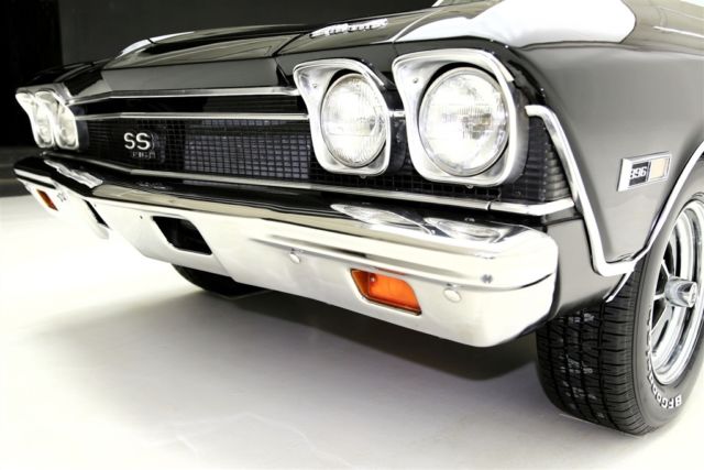 1968 CHEVELLE SS WITH MATCHING NUMBERS 396/350 HP ENGINE THAT HAS BEEN PROFESSIONALLY REBUILT WITH RECIEPTS TO PROVE IT! THE TURBO HYDRAMATIC TRANSMISSION HAS ALSO BEEN PROFESSIONALLY REBUIILT. IT BOASTS A HOLLEY DUAL FEED 4-BARREL CARB., EDELBROCK ALUMINUM INTAKE, CERAMIC COATED HOOKER HEADERS AND CHROME BREATHER AND VALVE COVERS. THIS BEAUTY HAS A LASER STRAIGHT BODY WITH TUXEDO BLACK PAINT. THE BLACK INTERIOR HAS BUCKET SEATS WITH CONSOLE, FACTORY DASH AND A SPORT STEERING WHEEL. POWER STEERING, POWER FRONT DISC BRAKES AND A 12 BOLT 3.73 POSITRACTION REAREND AND SWAY BAR. SOME OF THE OTHER EXTRAS ON THIS CAR ARE A SUN TACH, AUTO METER TRIPLE GAUGE, FLOWMASTER DUAL EXHAUST WITH CHROME TIPS AND A FACTORY JACK WITH SPARE TIRE. THIS CERTIFIED TRUE #'S MATCH SS CAR IS ROLLING ON BRAND NEW SS WHEELS AND BF GOODRICH RADIAL TIRES.