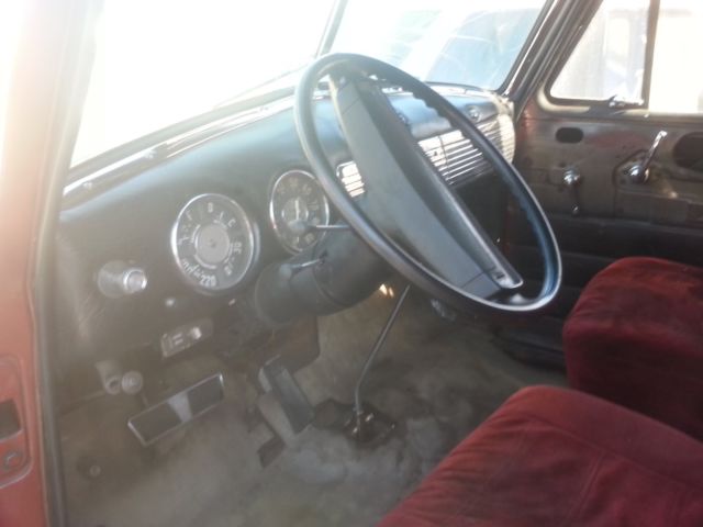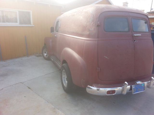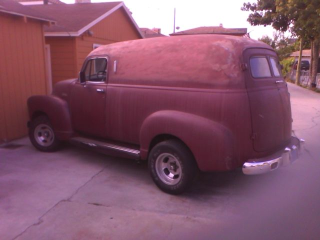 selling my 1952 Chevy panel, runs great, has 350 sbc w/automatic and shifter on the floor, has atilt steering column and i also have one thatcomes with it that doesn't have the shifter on it, has sub frame withfront disc brakes with drums in the rear with 12 bolt rear end,riding on old school mag's, dual exhaust with stock exhaust manifolds, the motor was recently removed to install new freeze plug, new oil pan gaskets and rear main and painted and reinstalled, the registration is up to date and it has a clear title in my name, its a work in progress, you can drive it while you work on it, has a new wiper motor in box that needs installed, steering column needs changed out to the other one, radio doesn't work needs new one, has new hood hinges installed, that's how the windshield got broken, also the previous owner cut off the drip rails and installed a sun rooffor reasons unknown, so it does need some interior work and some body work, but would make a really cool ride!I'm selling it as is where is with no warranty, I'm also selling it locally so I reserve the right to cancel this auction at any time should I sell it, please ask me any questions you may have before bidding on my truck! also buyer is responsible for any and all shipping!