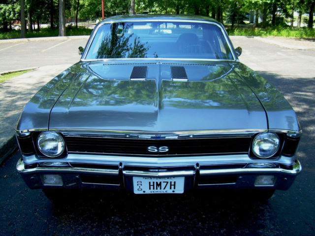 1970 Nova SS 36,000 Original Miles. Complete history dating back to original purchase in 1970 from Ed Stinn Chevrolet, 21201 Center Ridge Rd, Fairview Park, OH 44126. My neighbor purchased this car new in 1970, so, please do not comment on whether this is a true SS or not! I’ve known the car since the day it was born! I also have digital copies of 12 original photos from 1972 that will be included with the sale. This car is an original SS, 4 Speed, 12 Bolt Rear, Disc Brake, bench seat car, however, bucket seats were installed in the mid ‘70’s. The power brake booster was removed due to big cam, low vacuum, but still has original disc brakes. This car is part of a collection, and has always been stored in a humidity controlled garage, and has not been wet the entire 24 years that I have owned it. Cleaning consists of dusting and polishing only, no water! The entire under carriage of the car was cleaned to bare metal and painted several years ago. Front seat belts were restored for fresh webbing and had date code tag sewn back on. All seatbelt hardware plating is pristine. Has the front and rear bumper guard option. Original GM bumper guard boxes and instructions were saved and are included with the car. All sheet metal and emblems are original to car including all SS emblems; no reproduction stuff here. Headers with full exhaust and tail pipes exiting at correct location. Rear-end differential is fresh including 4.56:1 gears, axles, seals, u-joints, correct differential cover, bolts, and posi tag. Engine decode states: [’68 327, 325 HP, Manual Trans. Special Hi Perf.]. Engine is 0.60 over which equals 337 ci with 12.5 to 1 TRW pistons, 7-quart Moroso deep oil pan, pretty big cam; don’t remember specs, Moroso rocker arm stud girdles, double hump fueler heads, aluminum hi-rise manifold, Pertronix distributor, and Holley 750 double pumper. Original Muncie transmission was blueprinted and has Hurst shifter with period correct ball. Period correct Sun Super Tach, Oil Pressure and Temp. gauges. Also has Lakewood blow-proof bellhousing, drive shaft loop, and J-bolt traction bars. Has an in dash AM/FM stereo cassette player. Paint has some checking on the roof. I have owned this car for 24 years so this is obviously not another one of those flips you see listed on eBay.