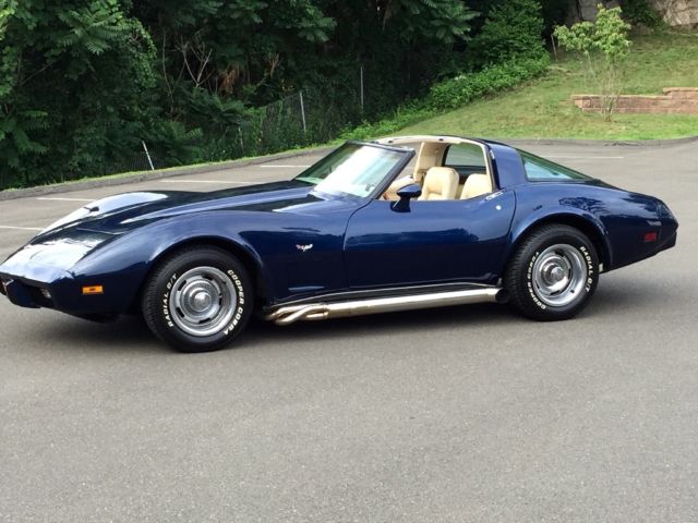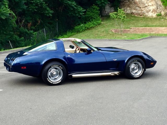I am selling a fantastic 1979 Chevrolet Corvette with the L 48 350 engine with matching numbers, this car was fully restored approximately 11 years ago and extremely well cared for ever since. Color code 83. Factory A/C newly serviced. I actually have photos from the beginning of the restoration till the completion. The engine and transmission and drivetrain have never been touched all original. It comes with the painted T tops AND the mirrored glass tops. tires are new and side pipes were installed brand-new three years ago. they sound great and they do have the baffles in them. I have an entire notebook of all the servicing records and all that was invested in the restoration. The paint has a great shine and it is a definite conversation piece and absolutely beautiful... there is quite a few c3s for sale but it's hard to find them this clean with this deep color blue and looking this nice and being priced reasonably . . if you have any questions feel free to call me at 203-410-4700 between 8:00 AM and 8:00 PM Eastern standard time.