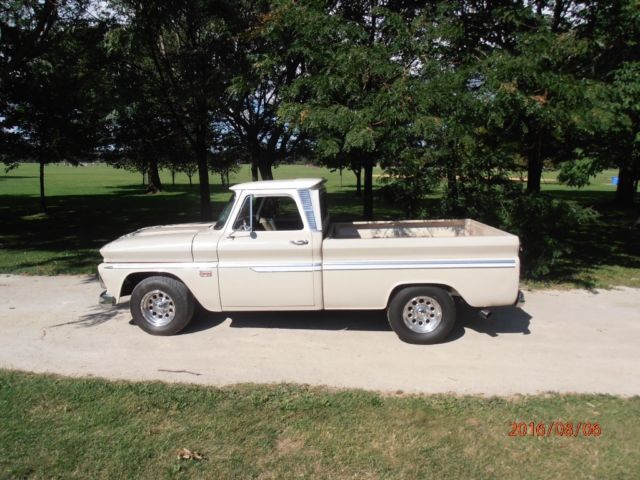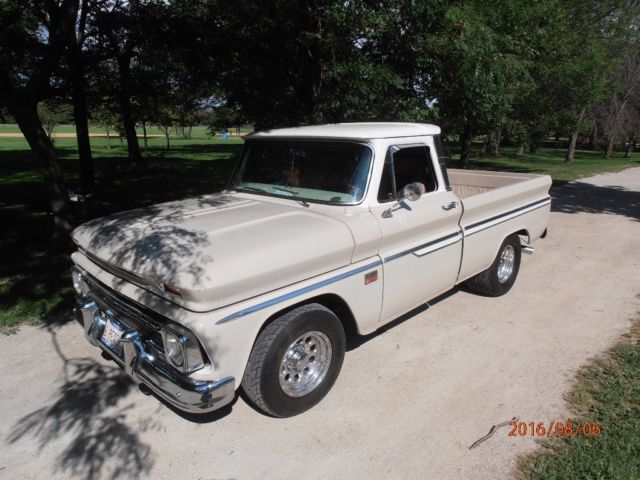 Hello,for sale is a restored 1966 Chevy C10 pickup truck,truck has nearly everything new,from front bumper to rear bumper except rear end,comes with a crate Chevrolet 383 ci engine with 427 hp at 5500 rpm and 468 ft lbs of torque at 4600 rpm,quick fuel 750 carb,New 350 trans with shift kit,custom 2,000 stall converter to match cam specs,coated headers with new stainless exhaust,custom interior,custom steering column and steering wheel,custom sound system,With 2 (8) inch Kicker subs,custom dash,power windows,B&M shifter on floor,power steering,power brakes,front disc,front 2 inch drop spindles,new front end parts,new shocks front and rear,led rear lights,rear and back up lights,front lights are new version headlights and led turn signals,rear bed has new wood bed with pop up fuel tank filler,also custom led lights in bed of truck,rear wheel wells have been modified to fit these nice fat tires,overall this is an very,very nice pickup turn key truck,you won't be disappointed.We are accepting best reasonable offers,Feel free to ask questions.Check out the pics.Less than 500 miles on resto,We also have documentation on work done.