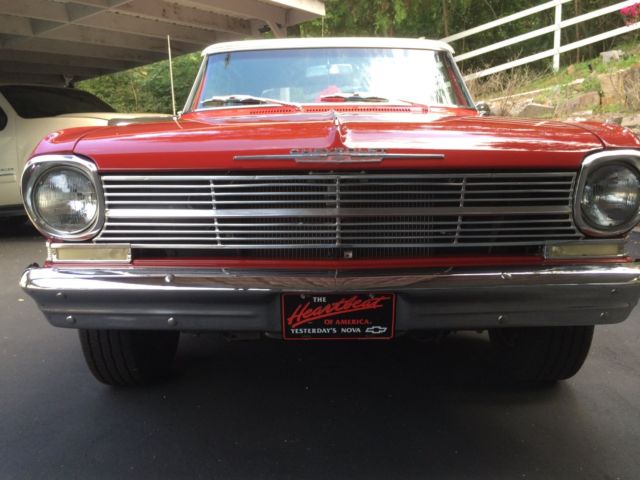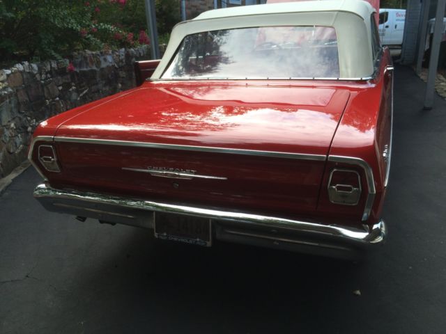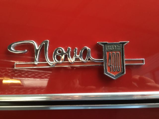 Here is my 62 Nova 400 Convertible. If you have been looking for a solid Nova Convertible then here it is. The engine is a 283 that wasfreshened up before I bought it. I did change the cam to a stock to get a smooth idle and I installed a new Holly carb. The engine is out of a 67 Nova. The trans is a 350 and both are in great condition. The engine runs as smooth as new with no leaks anywhere. The brakes are stock drum front and rear but it stops very well. The rear is stock but I did install a new 3rd member as the original was a little noisey. The rear seals were replaced at that time. All the gauges work great and I did install a new gas tank and sender. The interior is new along with the carpet. The trim is in good shape along with the glass. The tires are new with very few miles on them.The floor pans were replaced by the previous owner and did a fine job welding them in. All the front end was rebuilt by me with Moog parts. The paint is in very good condition with a great shine. It would be hard to find another Nova as solid as this one and condition this one is in. Please email any questions.Sold as is with no warranty and shipping is buyers responsibility. Thanks for looking