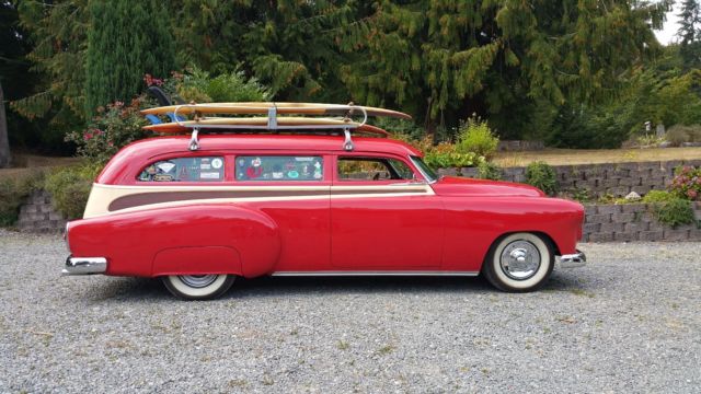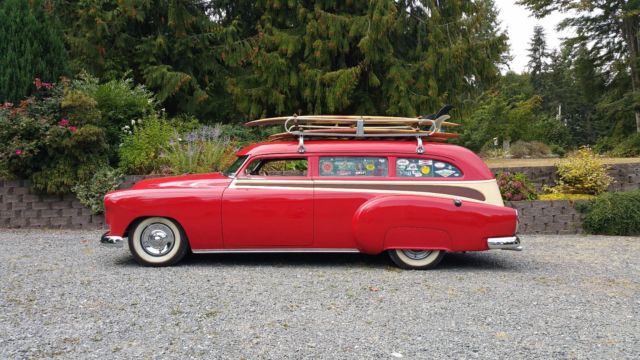 Summer is not over yet and this surf wagon is the perfect summer ride.This custom started as a 1951 Chevrolet four door wagon before its transformation into this cool custom. The work involved was lengthly. Its features are as follow:-Rear doors welded shut-Top chopped five inches-Shaved door handles-1950 Oldsmobile headlights-1953 Pontiac tailights-Custom made grille-Molded visor-1955 Packard dash-350/350 drivetrain-Mustang II front end with disc brakes and power steering