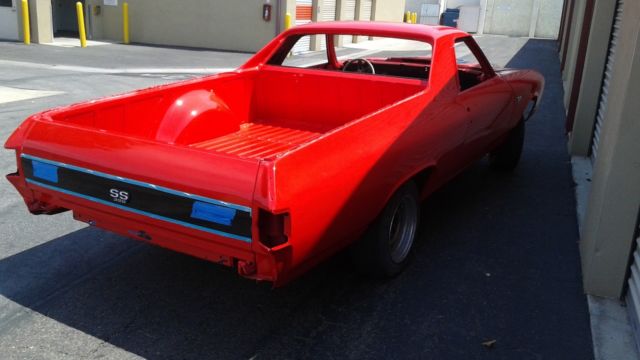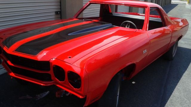 1970 El Camino SS with correct year .396, and a first .030 bore with freshly machined matching correct heads. New Freshly Rebuilt 12 bolt rear end! 700R4 Transmission with Torque Converter. Car comes with thecorrect Factory original Cowl Induction Hood....All OriginalSettings-Original Bumpers, The frame and suspension are freshly painted. Car comes with new bed rails Original Trim. Also comes with Correct Original SS Instrument Cluster and Dash! Many moreoriginal parts… This is a very clean Cali. truck…Great Project Waiting to be Finished ....... too many items to list…….. Truck is Partially Assembled! Engine, Transmission, and New Rear End Are Not Installed!Please See Pictures and CALL JOHN at 949-346-6077