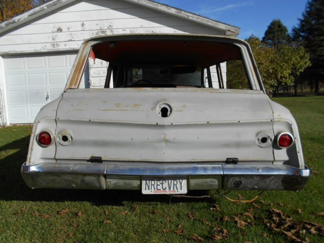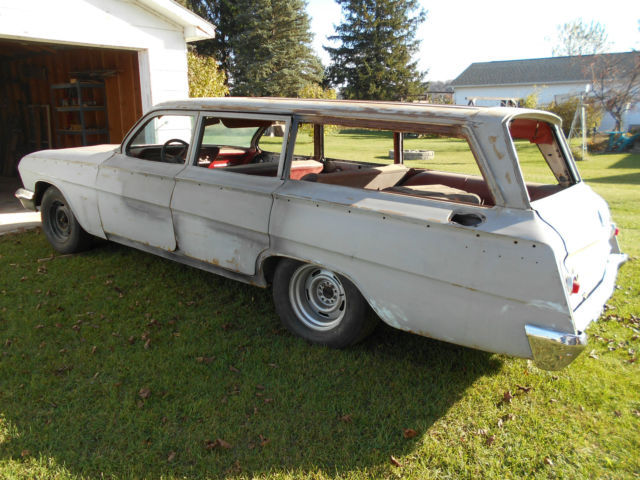 California 1962 chevrolet Bel Air station wagon Street Rod Project started in 2000 but could not continue,stored since 2005.Gray primer,surface rust from sitting under canopy in Torrance Calif.Original A/C car but not available,firwal altred for vintage air'not included.Shaved door handles and other fabrication by Al Hogan,compton ca.Front suspension support altered for 5.7 ram jet crate motor/4L60 trans,both available,yet.Ford 9 inch rear housing set up by currie for 4 link with their adjustable trail bars.New 4:11 richmand gears,auburn posi.Front disc conversion,lowered spindles,new usa rotors with surface rust.605 box conversion,borgeson steering shaft/joints,rebuilt chevy tilt column.Electric tail gate and wiper motors rebuilt.Never rin rear rally 8X15 rims with new 275X15 BFG'S.Hood,radiator support damaged while unloading car when i got to northeast iowa where the car is located.I believe all parts are present in boxes and may have missed something,ask.Local pickup only and all questions welcomed.Great winter project for next years shows and cruz's.Thanks!