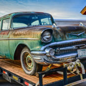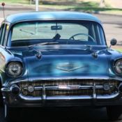 1957 Chevy Survivor! Bel-Air, two-door sedan, 6-cylinder, 3 on the tree transmission. Laurel Green and Crokus Yellow two-tone.6,251 original miles. That is correct. It sat on a Chevrolet dealership floor in Illinois for almost 50 years since new. I am the fourth owner. I have put about 250 miles on it since I bought it. We have not been able to find any rust anywhere. It drives great and appears to be 100% all original.
