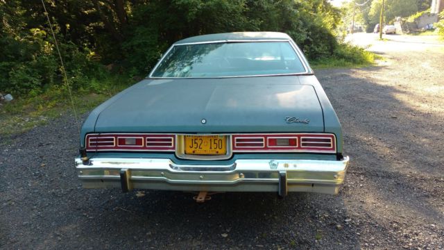 1976 impala parked in a shed since 1989 it now has new brakes new master cylinder brake linestires and tune up it has some rust on the rear drivers door the passenger side dog leg and a little below top chrome I have taken and posted pictures of these areas headliner has a hole in it the seats should clean up nice and have no tears it starts right up with a turn of the key transmission goes right in gear mileage is suppose to be true but I have no way to verify that. the frame is clean with no rust being sold as is buyer must pick up at zip code 17840 I work crazy hours so if there are any questions I will answer them asap thanks for looking
