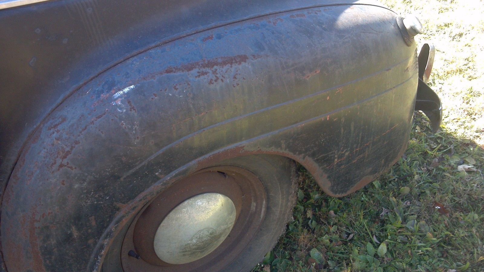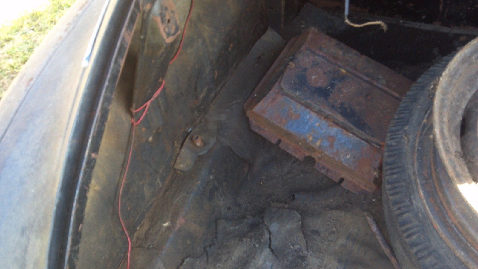 . there is two spare rims in the trunk one with a tire. the jack base and lug wrench are there. the worst rust I see is the drivers side running board. . drivers floor has rust and the drivers rocker part. this car was sitting in a clean dry barn since 1974. im sure motor will run. the battery is still under the drivers seat and all. a coon got in the car and tour up the front seat stuffing at one point. all the headline