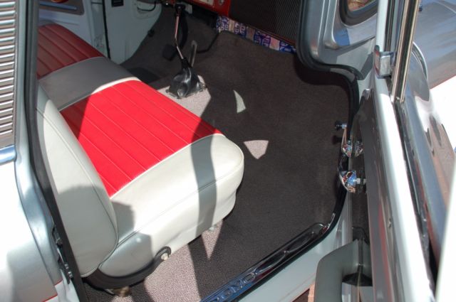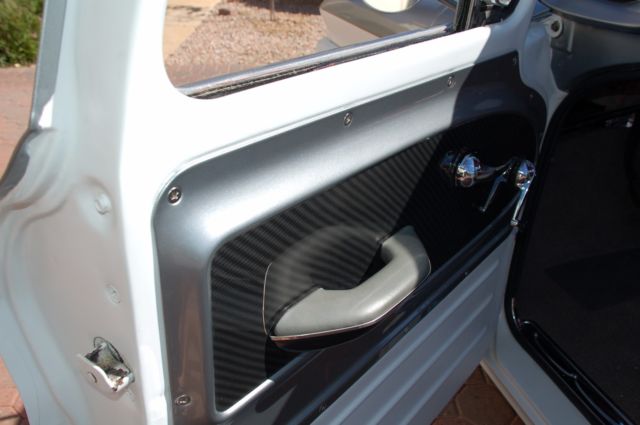INTERIOR - Cab completely stripped and re-painted. Gas tank relocated out of cab with a new aluminum tank under the bed. Seat fully rebuilt and recovered by Hot Rod Interiors with new foam and vinyl. Custom, hand-fabricated dash with all new White faced gauges. FatMat sound and heat barrier installed before new carpet was put down. Lokar Shifter and kickdown linkage installed. New rearview mirror, visors, brackets, door handles, window cranks. Interior fresh air vents rebuilt with new seals and painted. The interior color sets off the truck perfectly and the final touch was the door panels, glove box and dash being dipped in HydroGraphics for a custom carbon fiber accent.