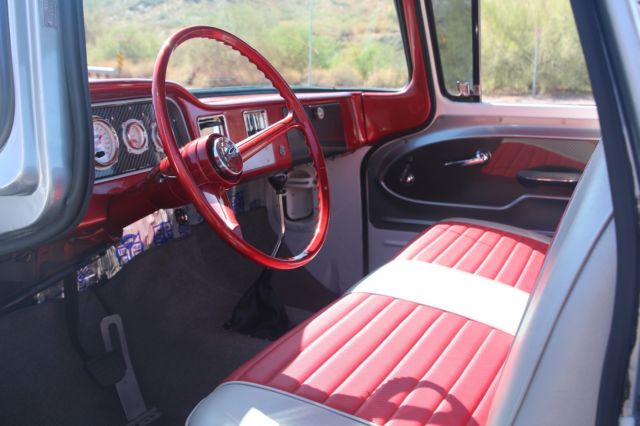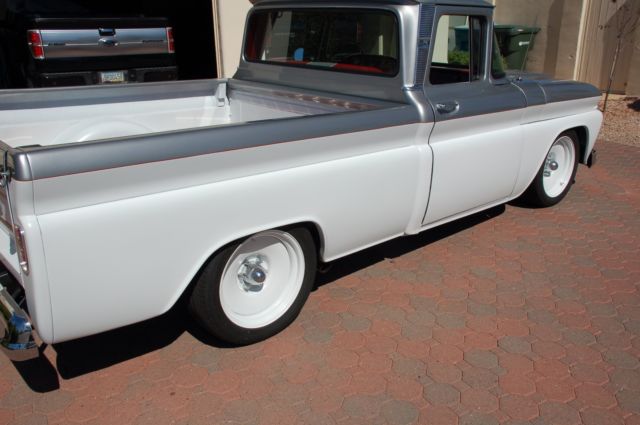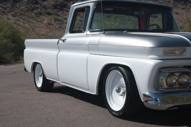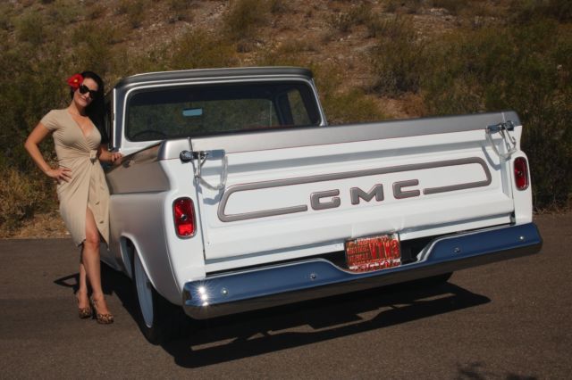 For sale is an absolutely stunning 1963GMC Pick-up in the most desirable configuration - Big Window, Short Bed, Fleet-side. This beautiful truck was just completed with this restoration. The few test drives to make sure everything works as it should, got tons of attention and generated a lot of interest.PAINT - Starting with a solid, Arizona truck, the truck was disassembled and media blasted to bare metal. Trouble spots were all taken car of. All materials used for the paint were high-end Omni and Medallion products that will stand the test of time. The custom flat white with high gloss silver looks amazing with the red pinstripe done by local favorite "Hollywood Brisco" which ties in the interior and bed colors perfectly.