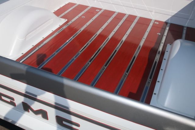 EXTERIOR - All of the following parts are New: Door and window seals, Hood to cowl seal, OEM front bumper was worked and re-chromed, rear bumper is brand new, side-view mirror, OEM Grill straightened and re-chromed, headlights, GMC grill letters re-chromed, door handles, tail-gate latches. New LED turn signal and tail lights and lenses. All wiring has been inspected and cleaned up or (Mostly) replaced. Everything works from headlights to tail lights. All of this is finished off with a custom Firethorn stained red oak bed. with polished stainless steel trim. New wheel tubs. The inside left and right bed panels are sprayed with indestructible white Gator Liner.
