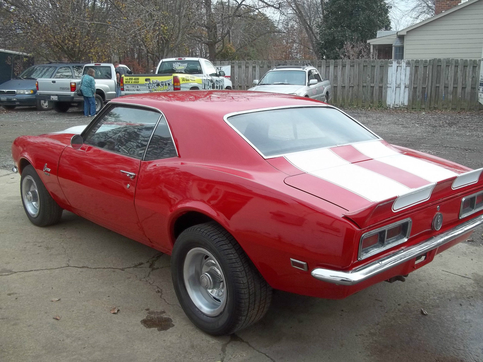 This 1968 Camaro has a 408 Built motor in it with aluminum heads ( not sure of the name of the heads ) . eldelbrock intake . new holly carburetor . headers . aluminum radiator . turbo 350 automatic trans . with B&N shifter. rally wheels . flow masters. interior is in good shape . ut could use new door panels . has 2 front racing seats. new carpet . headliner is perfect . new red paint job with white racing stripes. doors and quarters are in great shape . inside of truck is perfect. needs windshield wiper motor . has a 2 1/2 steel cowl induction hood . dash is in good shape . as 50 inch rear tires . this car is bad axx!!! Car is located in Fredericksburg Va 22408. Feel free to call with any questions. (540) 424-6722