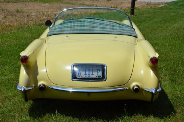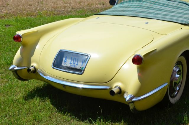~Harvest Gold Paint (1 of 120)~Woodland Green interior~1 of 700 total built in 1955~Automatic transmission~Original convertible top~Original removable hard top. Provided only as a "Dealer option" in 1955 (Note the different shade of paint on the hardtop)~Original removable side windows with covers~Original extremely rare factory supplied Tonneau cover~Original radio is still in good working order~Original clock still works and keeps proper time (believe it or not!)~Believed to be the original spare tire~Believed to be only the second set of tires (They pre-date the early 70's)~Only 452 miles since April of 1987~Has never,ever seen in climate weather~Always kept in climate controlled environment~Recent services include: Rebuilding of the original carburetor Remove and flush the original gas tank and re-install Remove and rebuild all brake components and flush braking system (master cylinder and all wheel cylinders are original to the car,they have been professionally rebuilt and reinstalled).