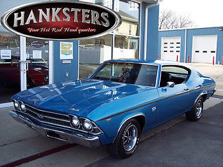 DescriptionClassic car insurance starts around $25/mo for a $25. 00 vehicle Stock # 69CHEV7872Lemans Blue 1969 Chevrolet Chevelle SS396 Styled Coupe ExteriorLemans Blue exterior with Black Stripes down the sideSteel SS hoodSS396 grille. front fenders and tail panel emblem14 inch steel SS wheelsStarfire SX5000 rubber 215/70R14 on the front and 245/60R14 on the rearInteriorBlack interiorFront bucket seats with headrestsFactory dash with 120 mph speedometer. clock and fuel gauge with generator. oil pressure and temperature warning lightsColumn mounted tachometerAftermarket 3 gauge cluster with voltmeter. water temperature and oil pressure gaugesFactory 4-speed center console with Muncie four speed shifterSS396 interior badgingJensen AM/FM/cassette radioDrivelineNOM 396ci Big Block Chevrolet engineMuncie M20 4-speed manual transmissionGM 12-bolt rear axle and housingAdditional OptionsHEI ignitionChrome air cleaner and valve coversHolley dual feed carburetor with manual chokeOffenhauser aluminum intakeHooker headers with dual exhaust and tailpipesPower steeringPower front disc and rear drum brakesHeater lines are hooked upFREE SHIPPINGHanksters offers Free Standard Shipping on every vehicle in stock to all of our customers within the U. S. Offer only applies to full retail price offers to customers within the 48 Contiguous States. Affordable Financing and Worldwide Shipping Available. For questions. please email or call. We have several classic cars in stock. please contact us directly for the most current list of inventory. Hanksters. its agents or employees shall not be held liable to anyone for any errors. omissions or inaccuracies under any circumstances. The entire risk for utilizing the information contained on this site or linked to this site rests solely with the users of this site.