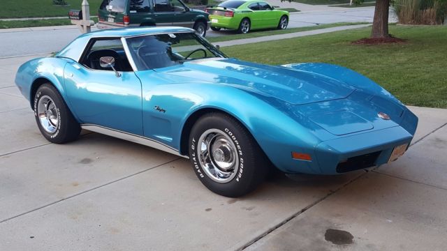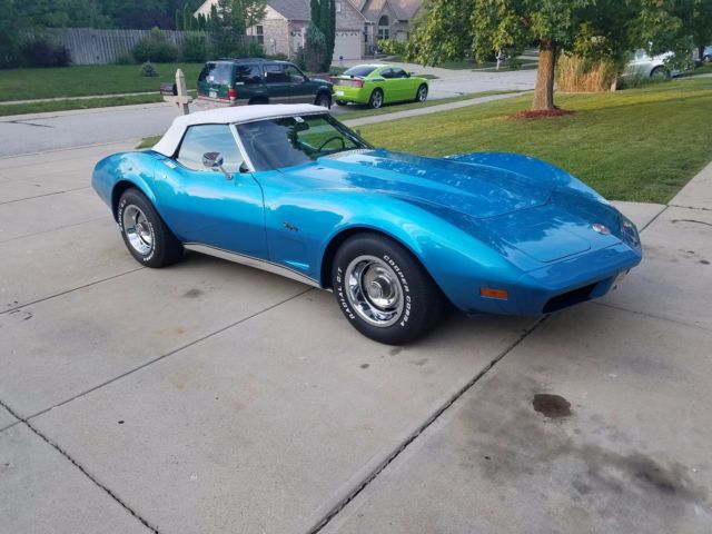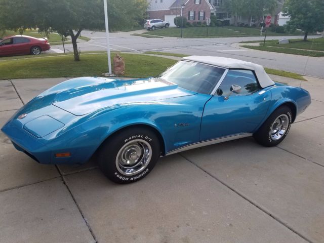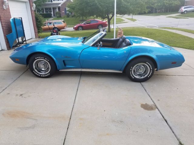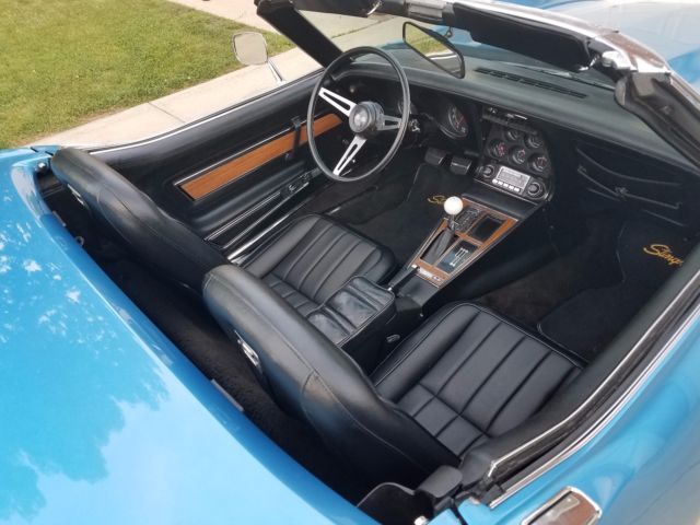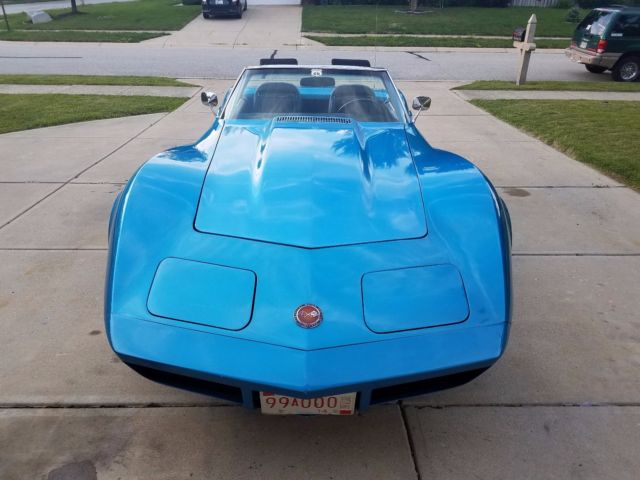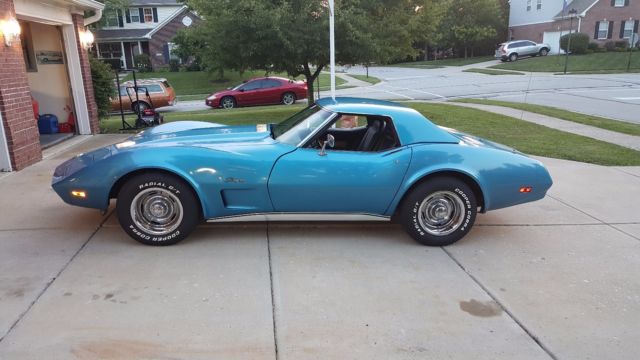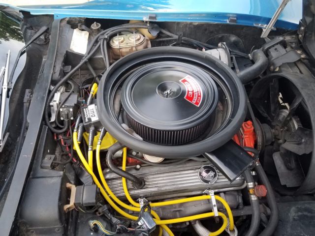 127K miles, numbers matching L-82 350 engine, 4-spd purchased car in 2011 medium blue, black interior. A.C (not installed), new white top, new seats, including foam pads and hardware, new door panels, new console, new rear compartment tray, hard top option, car came with deluxe interior, seats were redone in the vinyl, floor was sprayed with lizard skin to keep heat out. New clutch pedal assembly, and new center force dual friction clutch and pressure plate. New throw out bearing, transmission was rebuilt in January of 2017, everything in transmission was replaced and converted to an M-20 using NOS gear set. 2 ½’’ exhaust with 2 chamber flow master mufflers, replaced core support, drilled and slotted rotors, stainless steel brake hoses, new trailing arms springs and other suspension parts. New DUI HEI distributor, with tach drive, many more parts replaced over the last 6 years, have a folder with receipts showing what’s been replaced. Any questions please call 317-748-5640. $1000 non-refundable deposit due within 72 hours after close of auction. Seller has the right to end auction early.