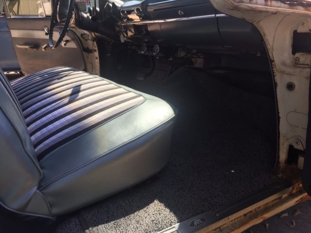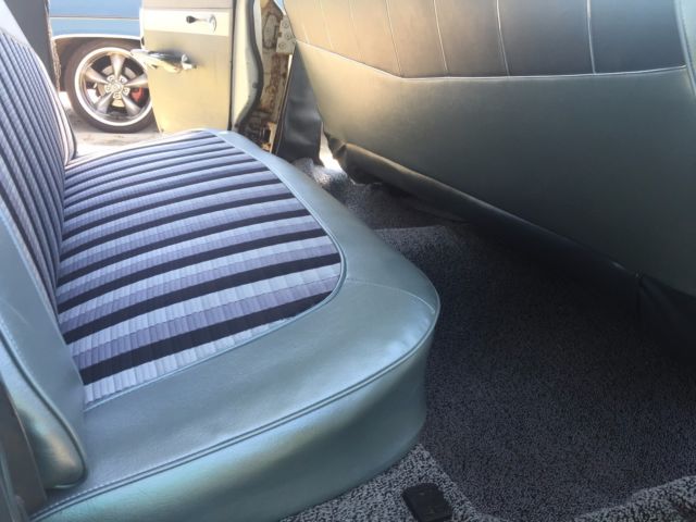 Interior: Re upholstered seats with Nomad material (Cars Inc.) New carpet Silver Tuxedo. The headliner, rear package area is all Original and shows well. Original door panels are complete (need replaced), Kick panels were replaced but have gotten wet, New Silver Lap belt Seat belts (not installed).
