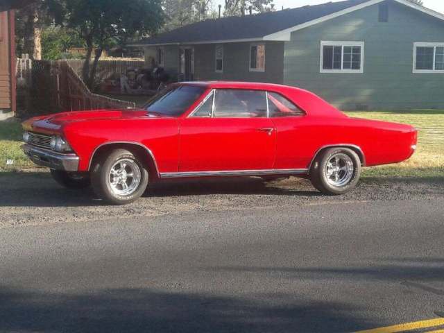 VERY NICELY RESTORED 66 CHEVELLE. FACTORY BENCH SEAT 4 SPEED WITH ORIGINAL 12 BOLT REAR END. FRESH BUILT 327 WITH ORIGINAL MUNCIE 4 SPEEDAND ORIGINAL SHIFTER.NEW URETHANE BASE CLEAR PAINT, NEW INTERIOR. COMPLETELY STRIPPED THEN NEW QUARTER PANELS WERE INSTALLED ALONG WITH PANEL BEHIND REAR WINDOW. ORIGINAL CALIFORNIA CAR WITH NICE ORIGINAL FLOORS.TRUNK IS NICE AS WELL. NEW TORQ THRUST 2'S WITH NEW BFG'S. I BOUGHT A NEW PLACE AND I HAVE TO FINISH MY SHOP. SO IT HAS TO GO.CAR RUNS AND DRIVES AWESOME SOUNDS GREAT TOO.MORE PICS TO COME WHEN I GET A CHANCE BUT VERY NICE CAR I HATE TO PART WITH.CALL LARRY WITH QUESTIONS 541-390-7777 THANKS