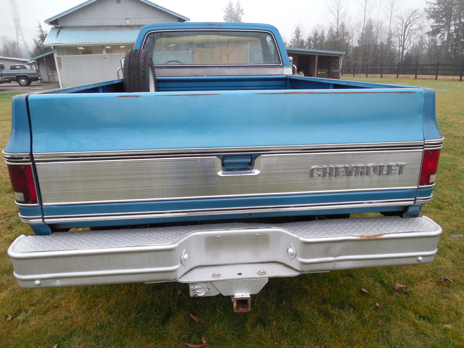1979 Chev 3/4 ton 2wd trailing special 454 ci. turbo 400 nice straight original truck with ps. b. c. m/fmhas some lifter noise and ps pump noise with very little rust and a really straight bed. 5 almost new tiresthe seat needs to be recovered and head liner re glued to pad. It has some rust in the right front fenderat lower rear and right front inner fender below battery tray.