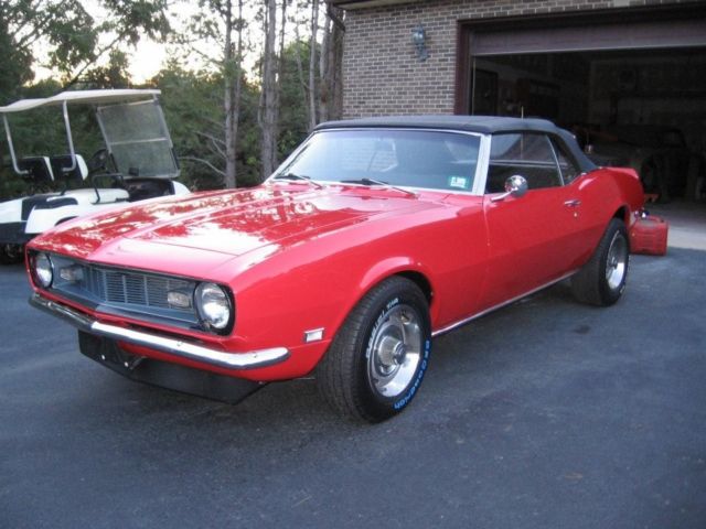 This car is a beast !!!!!!It is a 68 Camaro with a 454 chevy v8 and automatic transmission. Completely redone body paint and most of the interior has been redone. New transmission and front end and belts as well. I have paper work for almost every part put on the car.. This car was a project car for me and my father since i was in high school i am 33 now. All work other than minor things has been done by qualified professionals no weekend warrior work . i love this car and would keep it an run it my self but my dad passed and now i want to part with it to help my mother out with the bills. It is in great condition and has been garage kept since we got it. It only gets driven a couple times a year and never in any condition other than sunny. The person that gets this car will love it. It sounds amazing and is super fun to drive. Any questions just ask i will do my best to answer. 8945 miles on engine only bout 20 on transmission