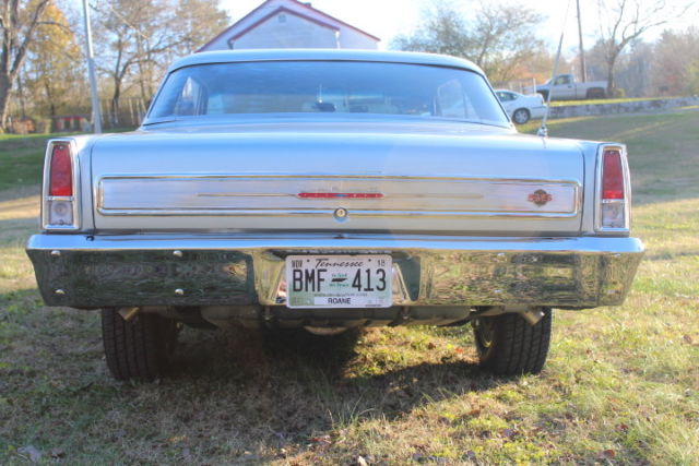 Up for auction 1966 Chevy 2 350HP 327 4-speed 12 bolt matching 1966 model engine and rear end Muncie4-speed is a 1965 model according to the numbers on it. This engine is a real L79 as I have torn it down and went all the way through it. I bought this car from the guy who bought it new in 1966, sold it to his friend when duty called and he went 2 Viet Nam. After he got out of the service in the 1970s, he bought the car back and kept it till I bought it in 2014. I have been restoring the car for the last 2.5 years. The car has all the original sheet metal except the passenger side lower quarter panel and the floor pans. The car was not rusty, it had a dent in the panel that was easier to replace than fix. As for the floor pans, they were just pitted. No holes, so I just replaced them, just the front and rear center section. Car has two much to list, but I will tell you some of the things I have done. New Aztec Silver paint, new bumpers, new grille. Had rear trunk and hood molding replated. Complete new interior, including console. New brakes and drums, wheel cylinders and master cylinder. Completely rebuilt the engine, it is now 0.30 over with the original speed. Pro type pistons, GM remake of the factory L-79 Cam. Original intake, new valve covers and breather.Hal L79 heavy duty factory radiator. Number on engine read to be a 1966 SHPE 1966 Chevy 2 block. There is no doubt in my mind that this car is the real deal. Car has all moldings and stainless 12 bolt 3.73 posi all rebuilt with new Hurst competition plus shifter made for a Chevy 2. Everything works except horn and back up lights.They just need to be hooked up. New tires and wheels with less than 200 miles on them. I have leftout a lot since there is too much to list. One more thing - I replaced thefront and rear windshield and all the weather stripping. This is a beautiful car that has not beencut up and molested. I have described this car to the best of my ability. It is nice. Look at my feedback onthe cars I have sold.Thank you and happy bidding.On Nov-26-17 at 17:51:23 PST, seller added the following information: