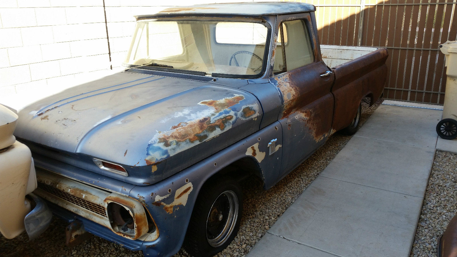 Please read all information before you call. text. or email with questions. You are buying 2 trucks located in Phoenix. Arizona. One is a 1965 Chevrolet C10 long bed with a newer Target 350 and 350 automatic transmission. The second truck is a 1964 Chevy C10 2wd with NO DRIVE TRAIN. The real money in this deal is the fact you can build the short bed with the drive train from the long bed and still have a long bed truck to sell or use as parts. Both trucks are from Arizona and have very little rust. The 1965 long bed will need a new passenger side bed side due to damage from previous owner (restored salvage title). The frame and rest of the truck is perfect. The long bed has a Target 350 engine. R134 A/C and under the dash controls. a 350 automatic transmission. great looking bench seat. and decent carpet. The truck is complete and missing nothing. Truck could easily drive if needed in one day. This truck comes with an Arizona title. I consider this long bed the donor truck. The 1964 short bed C10 is the builder. All body panels are good with no complete replacements needed. The truck has both front and rear bumpers (rear bumper in bed of truck). The truck has great patina. YEARS AND YEARS ago the truck sat next to a car that caught fire. The blue paint pealed and that is why you see surface rust on driver's side. The panels are in great condition. The only rust is in the floor board on the driver's side (see picture). The truck will need a custom suspension or use the suspension from the 65 long bed. Someone cut the coils at one point. I would swap the windshield with the 65 because of a small crack. all other glass good. This truck comes with an Arizona Department of Motor Vehicles Bill of Sale (VIN # 4C144H168209). I know you will have shipping costs. I am a reasonable person. Make a reasonable offer and maybe we can come to terms. If you have any other questions. please call or text. I can also record a short walk around video if needed. If you would like a more specific photo. let me know. Mark or Libby 623 451 0221