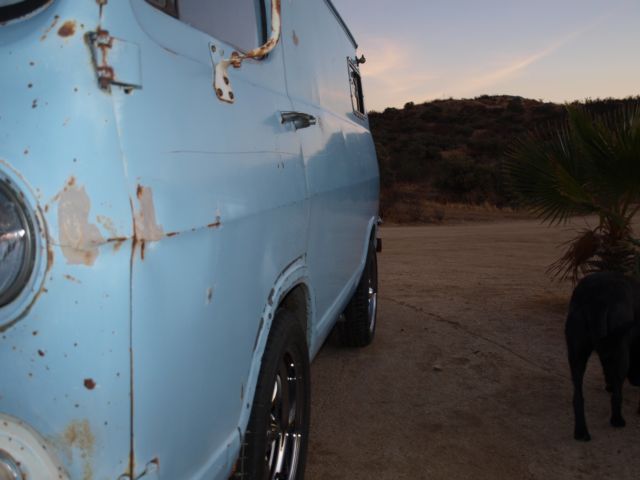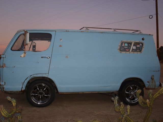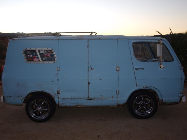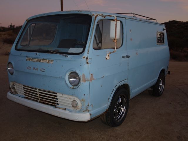 Cool 66 GMC half ton van. 250 straight six, three on the tree. Very solid drive train, runs and drives good. 90% solid body does have some rust see pics. Driver side is pretty straight, passenger has some dents on side doors and below. All lights work, heater works including fan, wipers work. Brakes are good, tires are excellent. That being said this is a 50 year old van. Needs new weather stripping on all doors and windows. Doors rattle when you drive down the road. Top and drip rails are good. All glass is good, Windshield has small bullseye. Windows roll up and down. Good ca. title in my name. Can store for free for 6 months if needed. Ant questions call me 951 306 6327 Gas gauge and speedo not working idiot lights do. Some door latches need work. Patch panel on passenger side floor.