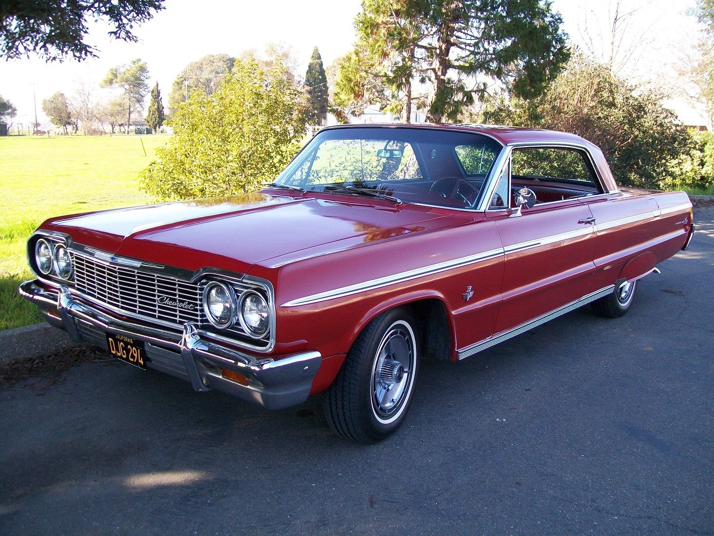 1964 IMPALA SUPER SPORT SS MATCHING #'S ORIGINAL 327 ENGINE AND POWERGLIDE CAR RUNS GREAT AND WILL DRIVE ANYWHERE. FACTORY TACHOMETER. POWER STEERING AND POWER BRAKES. ALL ORIGINAL AND STOCK. NEVER CUT OR MODIFIEDSOLID FLOORS AND QUARTERS ORIGINAL RED ON RED1 REPAINT -PAINT IS OLDER AND DULLING. PAINT LOOKS GOOD AT A DISTANCE. INTERIOR IS ORIGINAL AND IN GREAT SHAPE. CHROME AND TRIM LOOKS GOOD. GLASS IS ALL GOOD. REAL NICE AND ORIGINAL RIDE. 0 FEEDBACK DO NOT BID PRIOR TO FIRST CONTACTING ME. This vehicle is being sold as is. where is with no warranty. expressed written or implied. BID TO WIN. FOR OUT OF COUNTRY BIDDERS. CAN HAVE DELIVERED TO HAYWARD OR LA PORTS AT BUYERS EXPENSE