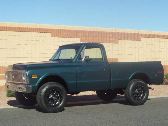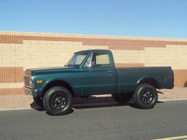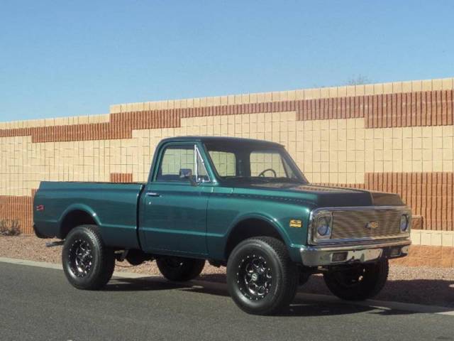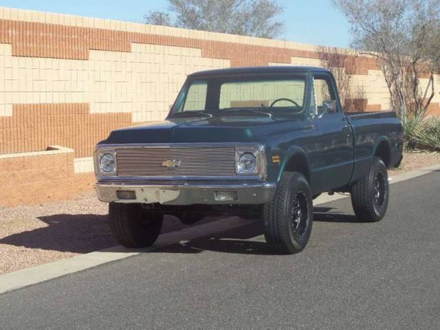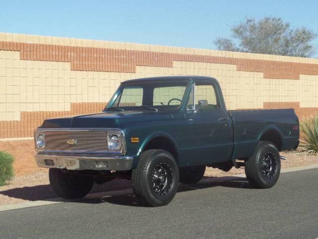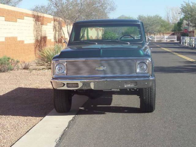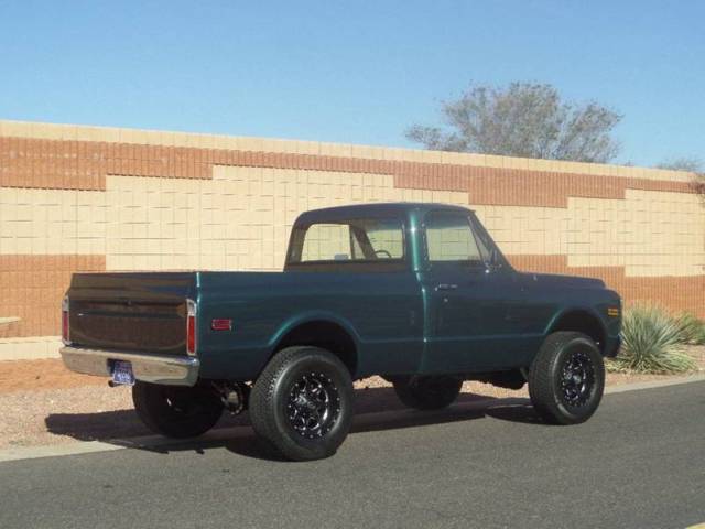 Excellent restoration on this rare original Southwestern Chevy K10 Short bed truck. If your looking for a turn key ready to go 67-72 K10 4X4 look no further,r this truck has it all. Options include 350 V8, Automatic Transmission,2 speed transfer case, Factory Air Conditioning, Heavy Duty Cooling, Power Steering, Power Disc Brakes and Locking Warn Hubs. The suspension has been rebuilt and upgraded with Rancho springs and RS 9000 adjustable Shocks. Rolling stock consists of custom Fuel 17 Alloy... Wheels wrapped by Michelin A/T Radial Tires. Starting with and arrow straight Arizona Body, multiple coats of Deep Emerald Green with Ultra European clear coat were laid down to give this truck a show quality finish like no other. Power comes from the tried and true 350 small block Chevy with performance enhancements including electronic ignition and headers with dual exhaust. The interior is a blend of the originality with just the right amount of creature comforts like Tilt Steering wheel, Power Windows, Power Door Locks, full instrumentation with tachometer and restored original bench seat.