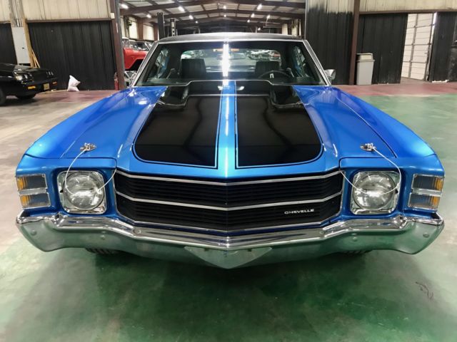 1971 Chevrolet Chevelle. VIN 136371R109549. Odometer reads 30,014 miles. 350ci Chevrolet V8 engine and Turbo 350 automatic transmission. 12 bolt rear differential. Power steering, power brakes, factory air-conditioning (not working). Runs and drives good. Stops and steers well. Solid body with driver quality blue paint. Very solid underneath. The black vinyl top is in good condition. The black interior is in good shape overall - shows well. New Pro-Car bucket seats with new Lokar shifter. Has new 18" tires mounted...on new, polished aluminum American Racing Torque Thrust wheels. Exhaust sounds great. Good looking Chevelle that is ready to go.** Before clicking the Buy It Now, please call us at 940-427-1138 to discuss the vehicle. **Yes - WE TAKE TRADES. If you have a trade-in, please send photos of your trade, detailed information about your trade and the price you`re looking to get for your trade.If you do not include this with your trade offer I will not respond. All sales will be subject to document and state fees. All Texas residents will be subject to sales tax, document fees and state registration fees.