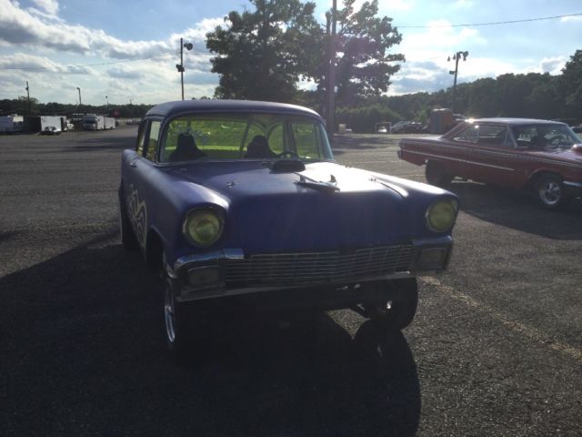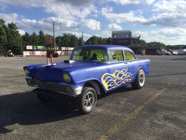 Newly completed 1956 gasser. It has been run on 6 passes. Complete and ready to race. Chevy big block with 400 turbo 9 inch ford 456 gears spool straight axel front with disc brakes. 8 point roll cage. White diamond tuck interior. Battery and fuel cell in trunk. Custom paint and pin striping. new Firestone slicks 10 inch ET slots. ET gasser front wheels. Clear title in hand