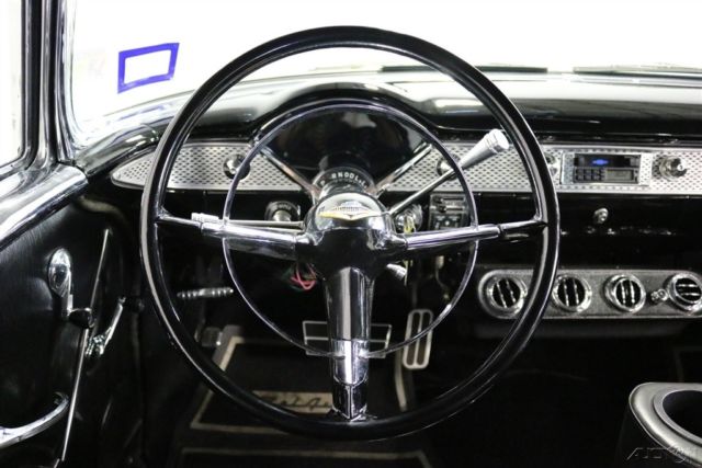 If you were to close your eyes and picture the ideal mid-'50s cruiser, the result would almost certainly mirror this 1955 Chevrolet Bel Air Hardtop. Awesome curb appeal combines with its strong running condition to make this a classic that would be equally at home on the boulevard or as a formidable competitor on the local car show circuit. The two-tone yellow and white paint job looks like it was made for this beauty and replaces the more sedate beige/blue combination it started off with. It's a great look that's been very well-applied and, as you take a lap around the car, the uniformity of the color underneath a very nice clearcoat certainly leaves a great impression. Chevys of this era were configured with lavish displays of chrome as a veritable badge of honor, and that badge is proudly displayed via the very clean and prominent front and back bumpers and long stretches of chrome trim running along the sides and around the window areas of this stylish cruiser. Step back around to the side and follow that trim as it transitions from front fender to door to quarter panel, then see how the curvature of each of the panels blends with the next and you can appreciate just how strong the alignment is. The attention to detail is evident, as the Chevy emblems in both front and back sit solidly and look particularly vibrant, and there's clear glass on all four sides. It's a very finished looking car. The black leather interior is equally impressive. The split bench seat in front and bench seat in back have a completely era-appropriate look, while offering a sense of luxury that wasn't on the menu when this Bel Air rolled off the line. A stock Chevy steering wheel sits on a polished chrome Ididit tilt column that will allow you to find that perfect driving position, and when you look just beyond it, you'll see a very impressive dash area that's ornamented by the expanse of original chrome trim running its entire width and looking clean. The dash retains its great stock look, but features updated technology in the form of digital gauges that fit perfectly in the instrument cluster. An freshly installed underdash air conditioning system has been added, and it's in good form to keep you and your crew comfortable when you embark on your adventures. There's plenty of luggage room in the trunk area, even with the full-size spare sitting in its intended vertical position, so no need to ask your passengers to pack lightly when you hit the road. A very fresh 350 cubic inch V8 sits under the hood and it's running nice and strong. Carrying a 4-barrel carb on top, it's sporting fresh seals and gaskets and sounds great as it exhales into its aftermarket headers. It's combined with a 4-speed automatic 700r4 transmission to make for a very streetable drivetrain that offers good off the line acceleration, as well as the convenience of an overdrive gear for engine-sparing, low RPMs at highway speeds. The powerplant sits in a well-appointed and spacious engine bay that also features braided fuel lines and a chrome alternator. With both power steering and power front disc brakes on board, this is a classic well-suited to frequent driving, should you so choose. This great looking vintage Chevy sits on a set of 17" Foose rims, outfitted with Goodyear Eagle tires. If off the charts curb appeal and great drivability are what you're looking for, you should really check out this 1955 Chevrolet Bel Air. Call today!