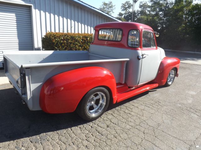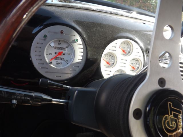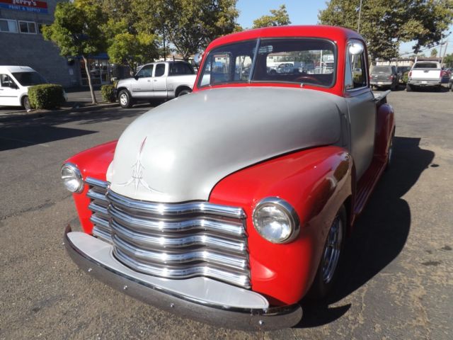 1949 Chevy 3100, lowered MUSTANG FRONT SUSPESION UP FRONT WITH POWER DISC BRAKES AND POWER STERRING. 10 bolt rear end, riding on super glide rear springs, Column shift, Southern Califorina Truck, Has 1953 Chevy pu doors with all new chrome on the inside, 350 chevy motor with 4BB AND HEADERS, MILD CAM, 350 auto trans. Chrome hood hinges, this truck sits right, looks right, Great Driver