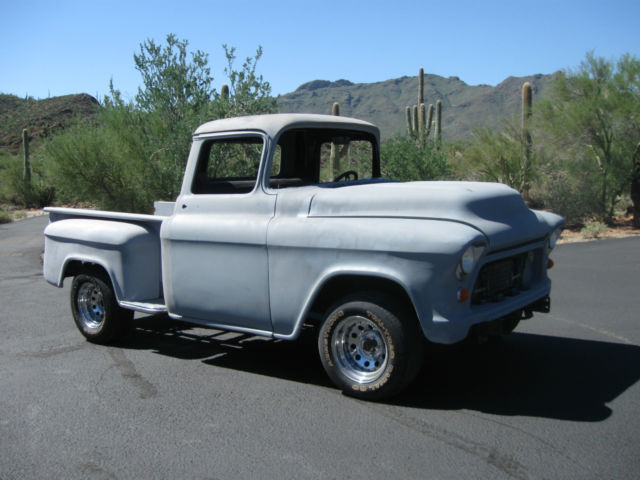 Chevy Truck Classic '57 1957 Chevy Short Bed Stepside Pickup. Primered and Ready to paint! Needs: wood bed. windshield. weather stripping. carb rebuilt. tune up and you are ready to roll! $8. 00 or Best Offer · Chevy 350 engine 4 bolt mains with Edelbrock manifold and Holly 4 barrel Carb. · MSD ignition. · Chevy 350 Turbo Transmission with Gennie Swan Neck Shifter. · Power Brakes with Chrome brake booster and master cylinder. · Power Steering with Tilt steering wheel. · Front disc brakes. · Rear Roll Pan with LED Tail. Stop and Backup Lights. · Hella Halogen Headlights with chrome trim rings. · Electrical system rewired with GM ATO Style Fuse Block. · Gas Tank relocated to under bed. · Two tail gates included (1 stock and 1 skinned) · Chrome Grill · Julianos' 3 Point Seat Belts (Not installed). · No Rust · Clear Title Unfinished project that I do not have time to complete. Needs paint. wood bed. windshield. weather stripping. carburetor and tune-up to complete. Engine turns over but will not start due to needing carburetor rebuild and tune-up. PLEASE do not bid if you do not intend to pay! Terms: 1. $400. 00 -NON-refundable deposit due Through PayPal within 48 hours. 2. FINAL PAYMENT due Within 7 DAYS - MONEY WIRE - CASH IN PERSON - CASHIERS CHECK - ALL FUNDS TO BE CLEAR BEFORE VEHICLE LEAVES. 3. Truck is located in Tucson Arizona 4. This Item is sold As Is. Where Is Thank you and Good Luck! Chevrolet 1957. Chevy 1957. Classic Truck. Chevy Truck. Hot Rod. Chevy 57 Truck