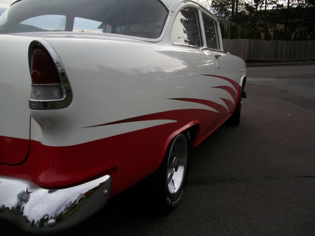 I am selling my 1955 Chevrolet 210 2 dr sedan. very well detailed and shows pride of ownership. all chrome looks new. very nice paint. and stock looking two toned black and white int. new black carpets and headliner. dash looks great. [not cut up] has a 67 Chevell steering wheel [not stock 55] new heater system. new windshield wiper system new power disc brake system. nbsp;new Ron Frances aftermarket wiring kit. new tinted windshield. new rear springs. rebuilt and detailed 350 Chevrolet motor. and 350 trans. engine bay is very clean. powder coated fender wells. battery relocated to trunk. cleans up firewall] also has a cross flow radiator. rally sport wheels. buy today and show tomorrow. car spent most of it's life in Southern California but prev. owner relocated to Colorado so car is currently licensed and registered there. have title in hand. for questions about the car please email me at oneflamed32@yahoo. com delivery is available or call 971 235 8750
