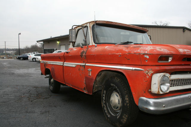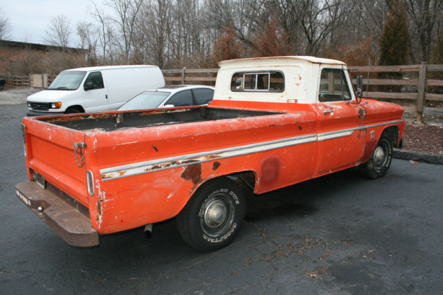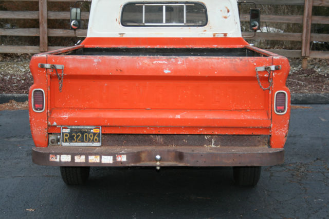 1964 Chevy C10 Fleetside with 350 V-8 and automatic. This is the long bed. small rear window model. Until it was brought to the midwest in 2013. it spent its entire life in SOUTHERN CALIFORNIA and still sports its original black plates. Stored inside since then. Can't claim it is entirely rust-free. but it is pretty minimal. Frame. floors. cab corners all in great shape. The surface rust that show in the photos is where bondo was laid in many years ago for some sort of minor body repair. Someone will come out way ahead on this truck. as the reserve is low. and there are receipts for more than $20. 00 in parts and labor from one of Louisville's top restoration and repair shops. There's a newer 350 engine that's been gone through. custom exhaust with Hooker ceramic headers. new tires and brakes. new windshield. rear end. custom white oak bed. all new wiring and much more. You can drive this one home. and it has a great original patina that draws thumbs up wherever it goes. Front end has been checked out - new idler and pitman arms. rest of front end is tight. Wire transfer is also acceptable method of payment.