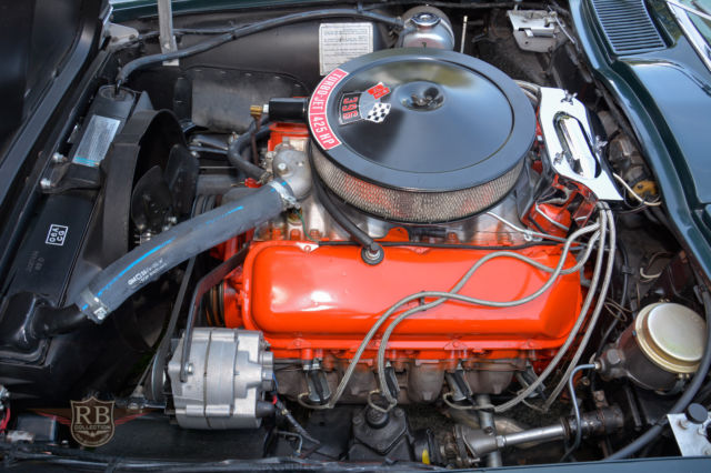 For the 1965 model year, Chevrolet offered the legendary “big block” engine in a Corvette for the first time. Produced only during the second half of the model year, a specially tuned, 425-horsepower version of the 396 cubic inch unit fitted to the Corvette, which transformed it into a tire shredding monster that was both cheaper and faster than the previous range-topping Fuel-Injected 327. The 396 was only offered for one half of the production year, as the 427 cubic inch big block replaced the 396 for 1966. This 1965 ½ Corvette coupe is one of just 2,157 examples built with the 396 and is finished in its original colors of Glen Green over a saddle deluxe leather interior. It is a very nicely presented car with a good quality, well-detailed older restoration still appearing in good order. The body is very straight with crisp lines and very good panel fit. Glen Green is a fabulous color on the Bill Mitchell-penned body, and the paint on this car presents in very good condition, with just a few minor cracks visible on close inspection in the typical trouble areas. Overall, it is extremely attractive with nice chrome and good quality detailing. It rides on a set of reproduction P48 knock-off wheels with new whitewall radial tires for just the right look. The cockpit is trimmed in saddle-colored leather and carpet as original (code 421), with correct pattern materials on the seats, carpets and door panels. It is equipped with options such as the teakwood steering wheel (N36), transistor ignition (L75), Whitewall tires, tinted glass (A02) and an AM/FM radio (Z01). The interior is very well detailed, with correct gauges, seatbelts and a properly working original clock. Lifting the hood reveals the 396 cubic inch, 425 horsepower V8 which is believed to be the original unit for the car. The engine was recently rebuilt, is properly detailed down to the overspray on the exhaust manifolds, and it runs strongly. Power is sent through a 4-speed manual transmission and on through a 3.55:1 rear axle. Other options include transistorized ignition, and off-road exhaust (N14). Performance is astounding, with huge torque and endless pull from the 396 along with an awesome soundtrack. Road manners are excellent with excellent handing and a tight, well-sorted feel. This car is genuinely fast, very well sorted and incredibly enjoyable to drive. This car has been awarded as TOP FLIGHT by the NCRS (2018). Documents and judging sheets are available for review upon request. Rare, highly collectible and extremely attractive, this genuine L78 Corvette drives extremely well yet remains more than attractive enough for casual show. We are confident that any enthusiast would be proud to keep this wonderful Corvette L78 Coupe in their collection. |