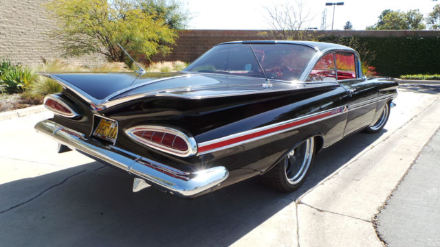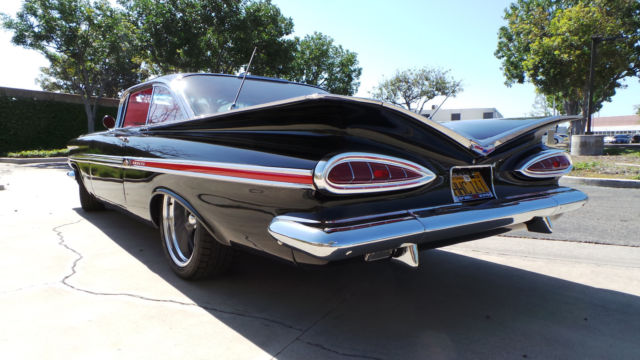 1959 chevrolet impala. This car has a brand new crate engine. Direct injected LT1 chevrolet engine with a 4l65e automatic transmission. Complete new fuel system for the lt1. Ididit tilt column. Car received the new engine transmission along with all the new suspension. Vintage ac/heater which blows ice cold. The rear end is a new custom 9 inch with currie housing posi and all global suspension in the rear. Front has global west tubular control arms along with a new quick ratio power steering box. Aluminum radiator and electric fan to keep it cool. The dash was equipt with dakota digital analog gauges. Led taillights to make this car be scene anywhere. 4 wheel ccp big disc brake kit along with a power brakes to stop this big car. Custom American racing wheels 18 and 20 inch rims with bfg tires. Everything done and ready to go. Great car to cruise and drive. This was not a cheap built car all work done by a professional shop. Any questions feel free to contact me. 7144127086