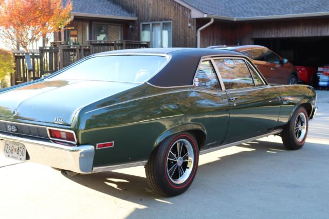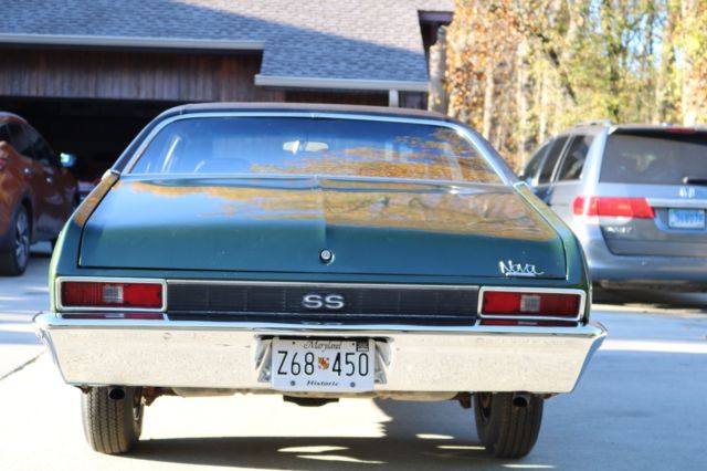 What an awesome, documented, 1 owner 1972 Nova SS this is!!! You just don't find them like this anymore. All original body panels. Some original paint still.All original glass except windshield. windows roll up and down perfect. the trunk is all stock appearing including original trunk mat, spare tire, jack and lug wrench. Underneath car is super clean and no rust.There is some rust on the body, mostly around the back wheel wells and some chips and dings. The interior is original too.Only the drivers seat is worn. the passenger seat and back seat appear never sat in. reason being the original owner did not have a family. How often do you see original seats in these Nova's - they always have different interiors. The engine is completely original with factory choke working perfectly. All original drive train and runs perfect. Awesome rumble! Motor and trans completely rebuilt in 2002. Only 12,000 miles on it since then. I wouldn't hesitate to drive anywhere! Never overheats. Idles perfect. No oil leaks! No rattles. No smoke. Drives perfect. Shifts perfect! Cruise at high speeds. Brand new radial red lines and brand new Hurst wheels. Original wheels with tires come with it too. Power steering. Power front disc breaks work perfect. No exhaust leaks on beautiful stock exhaust. Sounds awesome! You could let this car sit and idle for hours. Heat, defrost, lights, turn signals, key buzzer, idiot lights, seat belt light and buzzer all work!! Dealer installed 8 track, AM/FM, speakers all work great. Beautiful original back bumper. Replaced front bumper with brand new one because wasn't as nice as back bumper. Original Protect-o-plate, Installment Sales Contract, Emission control systems booklet, Owner Manual, Chevrolet Consumer info and title showing 4 miles. Also receipts for motor and trans rebuild totally over $4,600.00. Send me your cell # and I will send you a video of car running and idling. Good luck ever finding another '72 Nova SS in this original condition. Running like this one or documented like this one - and a 1 owner! Very reasonably priced - well under $20,000. I added a couple of pics of one of my best friend's son, his girlfriend and another couple going to their homecoming in the Nova. It's the first time anyone has sat in the back seat! He's so crazy for that car how could I say no. He's 6'4 and still fit! An awesome pitcher too! He just won the Cal Ripken Baseball - Walk off Championship today in Myrtle Beach,SC.!