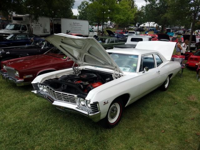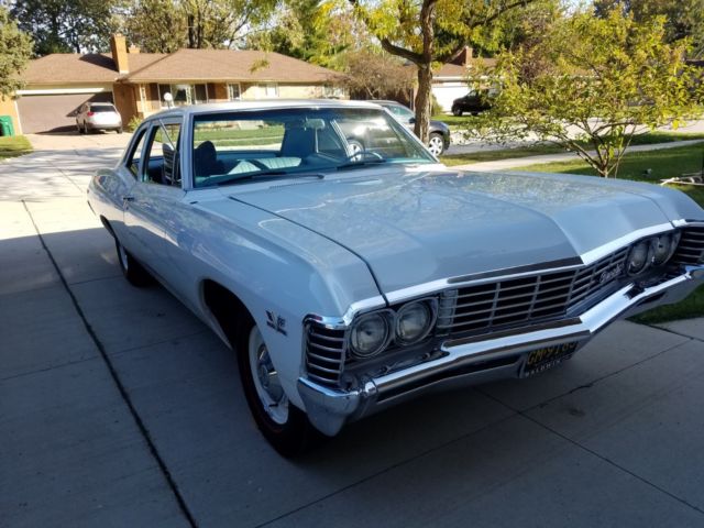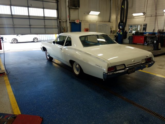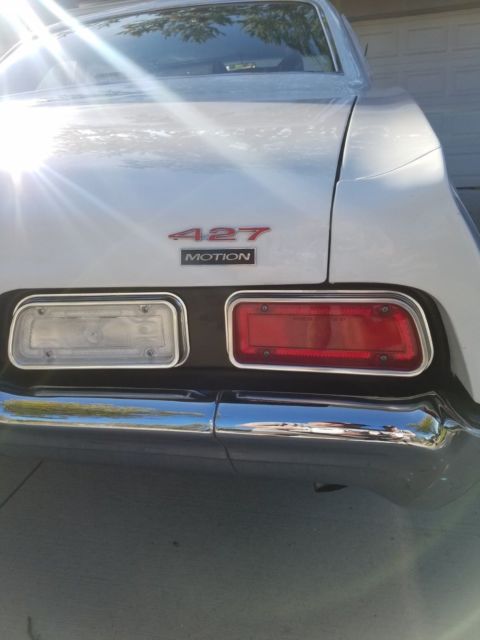 1967 427 Motion Biscayne tribute. Original California black plate car purchased in San Diego and shipped to Michigan about 4 yrs ago. Originally a6 cyl 3 on the tree manual car. Ermine white exterior with a blue interior. Basically a zero option car, manual everything and 425 hp with a Muncie M-20and a total blast to drive. Bumpers all rechromed, trim either polished out or NOS. There were lots of NOS parts used in the restoration including trim, hubcaps, emblems (including the Motion emblems), Shifter and probably the most amazing part of the car, the engine. Yep its NOS as well, not a L72but as close as it gets being a LS6. I aquired in still on its pallet! and its amazing. The LS6 and the L72 share most parts, the same solid cam, winters mark alum intake and the big rectangle heads. I had numerous people try to buy the motor before I put it in including a collector that has a NOS motor collection..lol But I felt this car was perfect for the motor. You never see Motion cars real or not so thats why I thought it would be so unique. They calledthese the "Drag racer specials" at Motion.. Total sleepers. The car looks very nice and is used as a driver for cruises and car shows which are plentifularound the Detroit area. The car is no award winning trailer queen, I drive it so there are some dings and scratches and I would say a new paint job should be in its future. But look at the pics, it still turns heads and its impossible to go anywhere without people asking questions or taking pics. Hate to see it go but its time to look for the next one.. Turn key and super reliable, New suspension( tubeular control arms), brakes, wheels and tires, custom made cross member, H-pipe exhaust with dumps like the old days, totally rebuilt m-20 4 speed, the clutch, bell housing all linkages are brand new. Two things the car doesn't have installed yet is the correct 4 spd steering column and the 12 bolt rearend, but BOTH ARE INCLUDED IN THE SALE. Ask any questions and I have more pics just taken yesterday that I can easily text to you.. Thanks for looking.