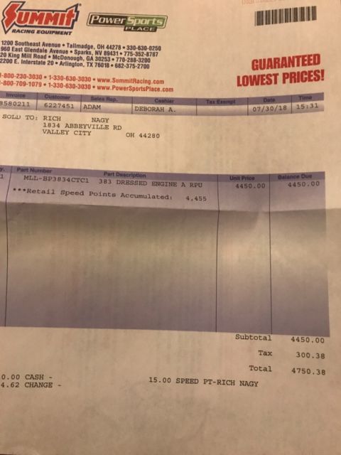 1985 Chevy C10 Shortbed Truck Has a brand new crate motor from summit 383 Stroker with aluminum heads Holley 750 only 1,221 mile have all receipts OVER 7,483 Dollars in Receipts Total Has a 350 trans with a Hughes 2500 torque converter Has all new stainless exhaust truck Runs and sounds great Can run on HWY 75 mph @ 2900 rpm Truck has Faded paint and patina No Rust very clean and solid truck Has new carpet seat needs recovered has rips Needs tires have over 6k in motor and trans have receipts new brakes calipers and rotors truck needs very little look at picks for condition it's very solid At end of Auction 500 non refundable The rest in cash at pickup