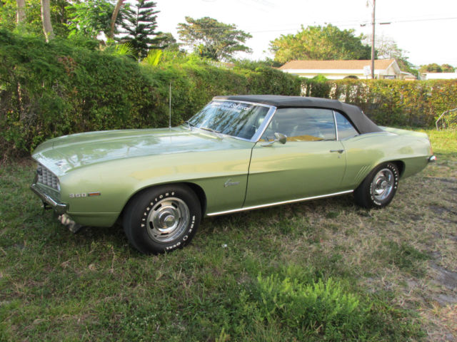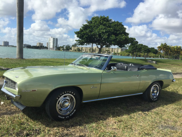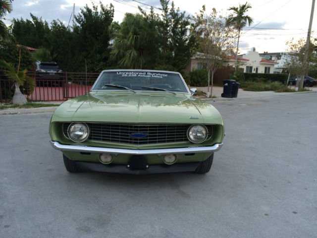 1969 Chevrolet Camaro "UNRESTORED SURVIVOR" Garage Kept . All original stock / with 26k Actual Miles . All original documentation /original invoice and window sticker . Matching Numbers / Service Records . Original Owner's Manual . 350 CID / 250HP . Automatic Transmission. Posi-Traction. Factory A/C . Power Convertible Top . Power Steering . nbsp; Power Disc Brakes . nbsp; . Rally Wheels . Spoilers . The body is super straight and completely rust free the paint still looks as good as it did 45years ago. Also under carriage is perfect no rust or corrosion what so ever. still shows factory undercoating. Mechanically the car runs absolutely amazing. Drives and shifts like a new car. Interior is 100% original. the seats. oor panels and carpet are perfect. o cracks in the dash and the gauges are nice and clear. Everything works like it should including the factory am radio. The car is an absolute dream to drive and gets a lot of attention . Remember they are only original once. !! Call us for more details At 305-757-5818
