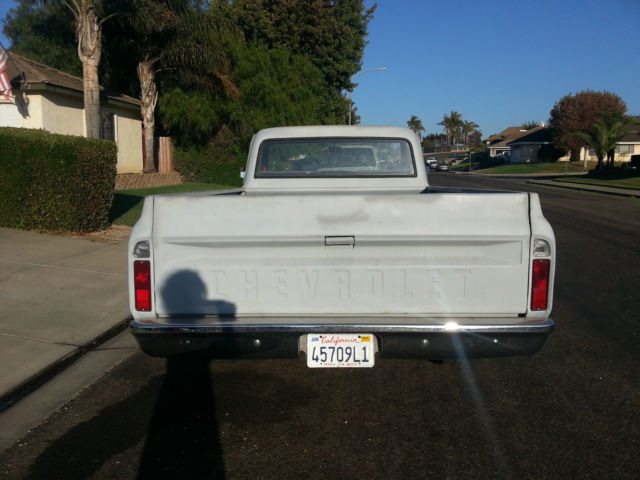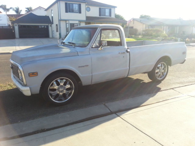 1972 C-10 CustomBig block 454. gear drive. headers. starter. heat shield. turbo 400 trans. polished aluminum high rise tunnel ram. new Edelbrock 650. polished aluminum valve covers. polished aluminum high volume water pump. chrome alternator. chrome pulleys. new aluminum radiator. dual electric 14" fans. new seat. new steering wheel. new light lenses. new rear bumper. 20" wheels. Goodyear tires. Cowl induction hood. sport mirrors. new exhaust. new sending unit in fuel tank. new rubber around doors. Home (805)934-5091Cell (530)417-1239 ask for Mike